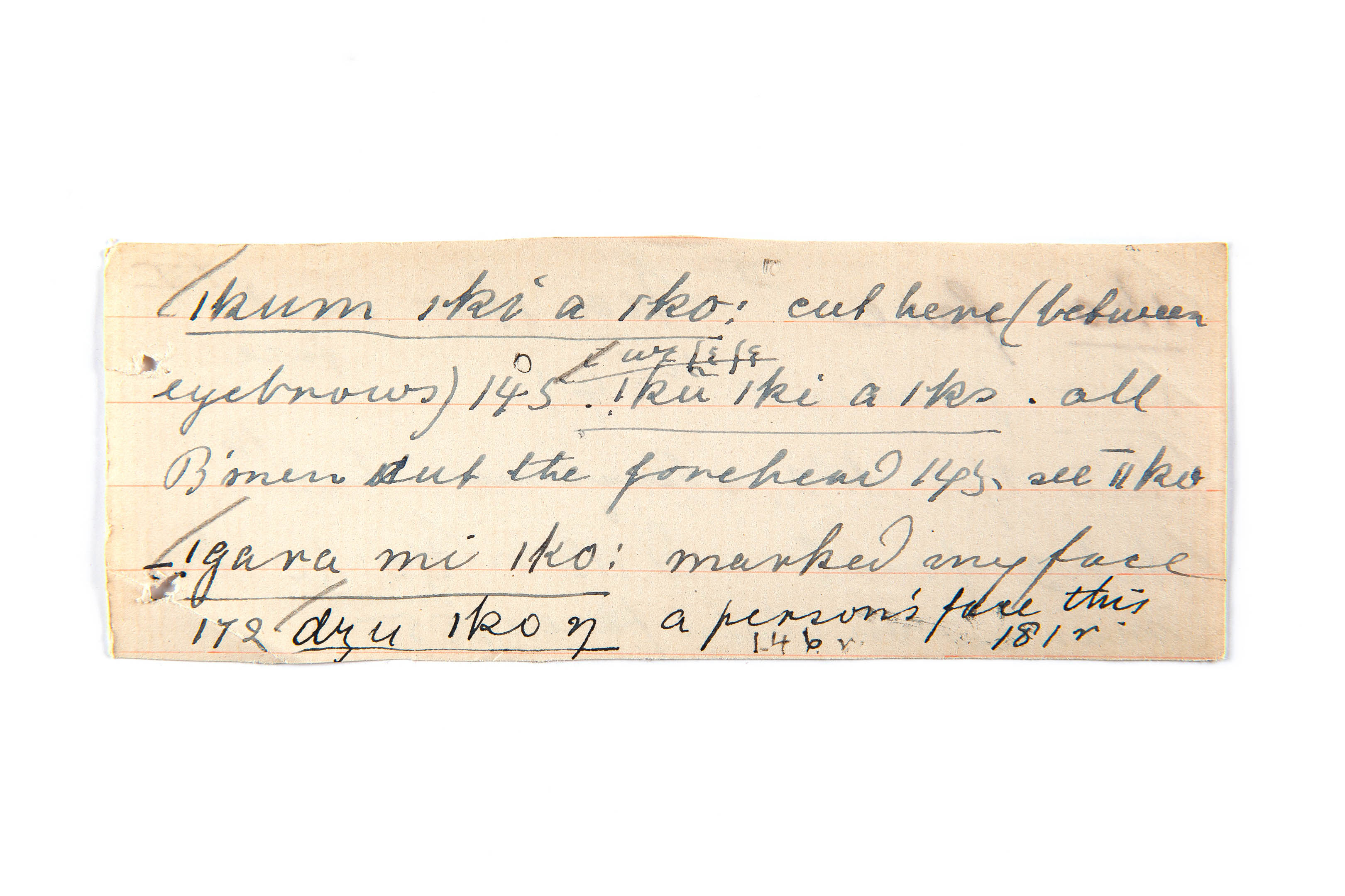 cut (between eyebrows), Bushmen (cut the forehead), marked face (a person)