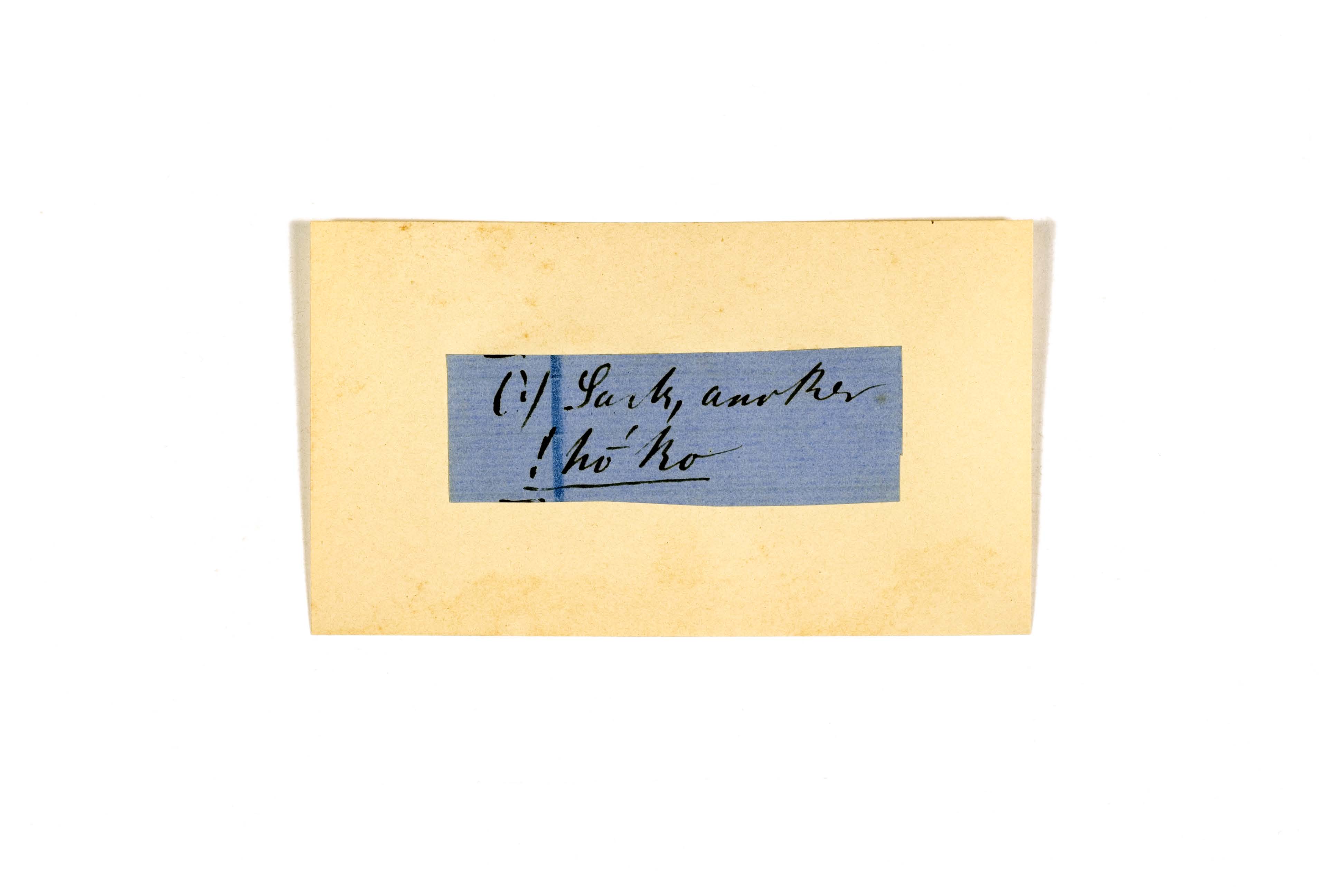 ink on blue paper glued on card