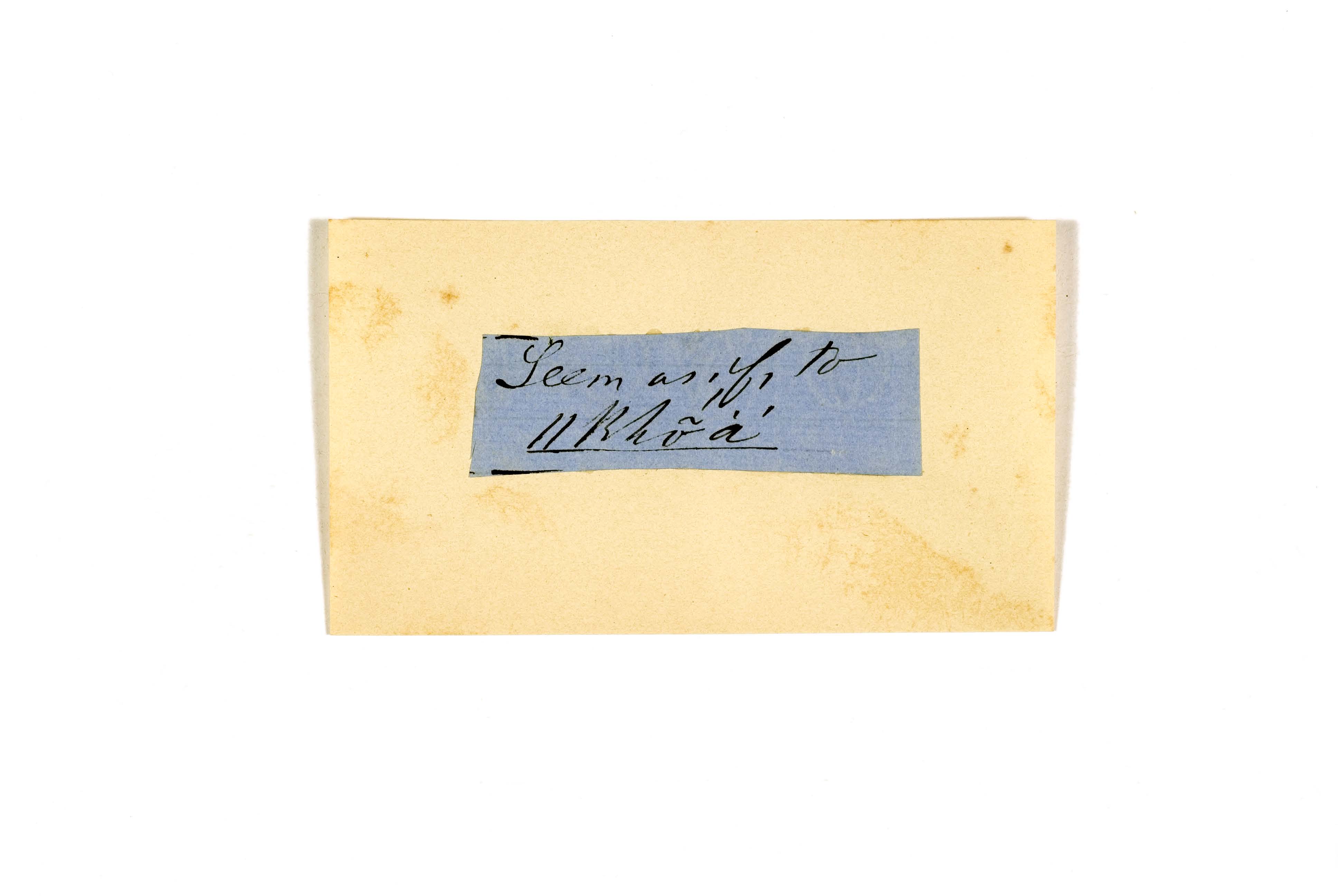 ink on blue paper glued on card