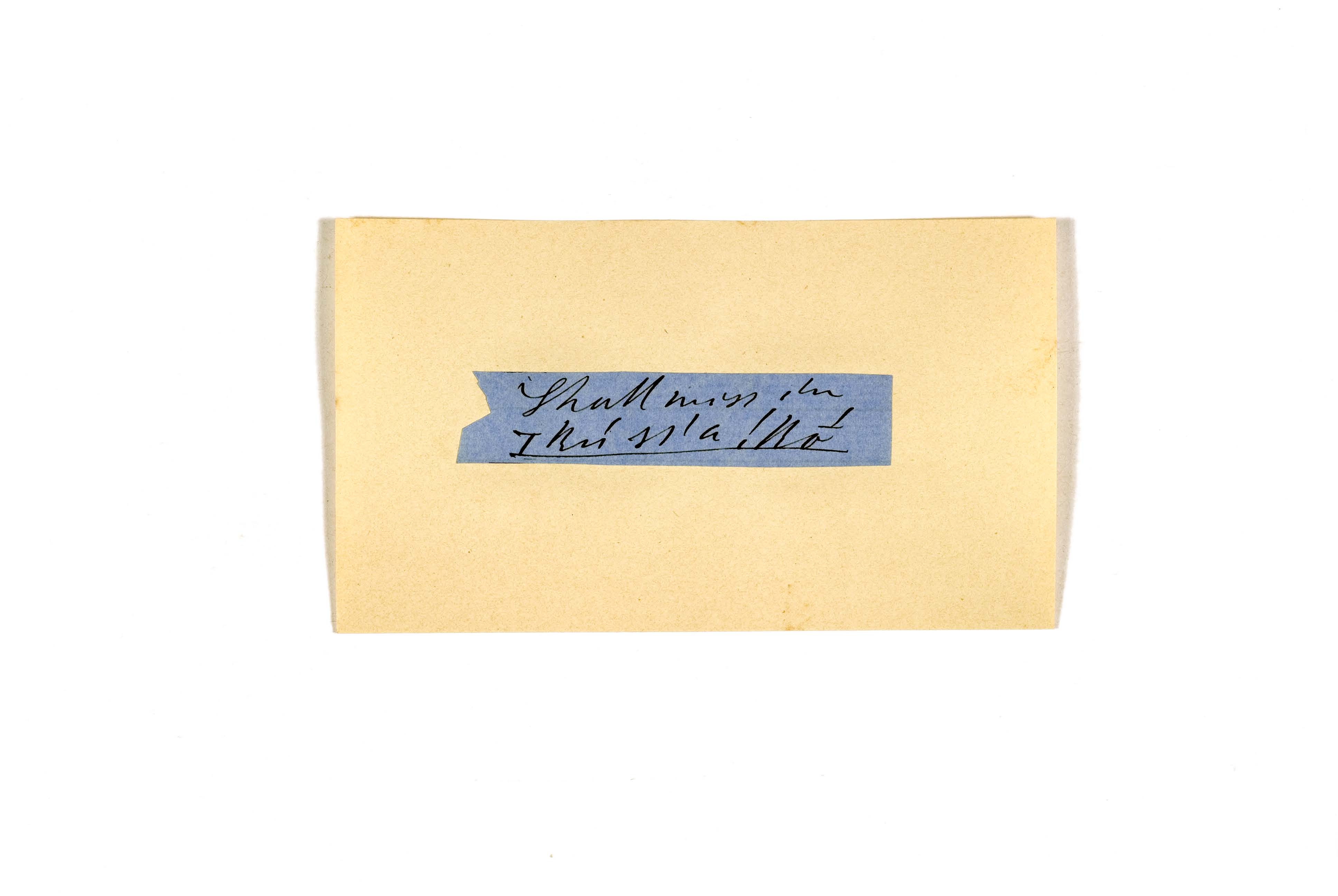 ink on blue paper glued on card