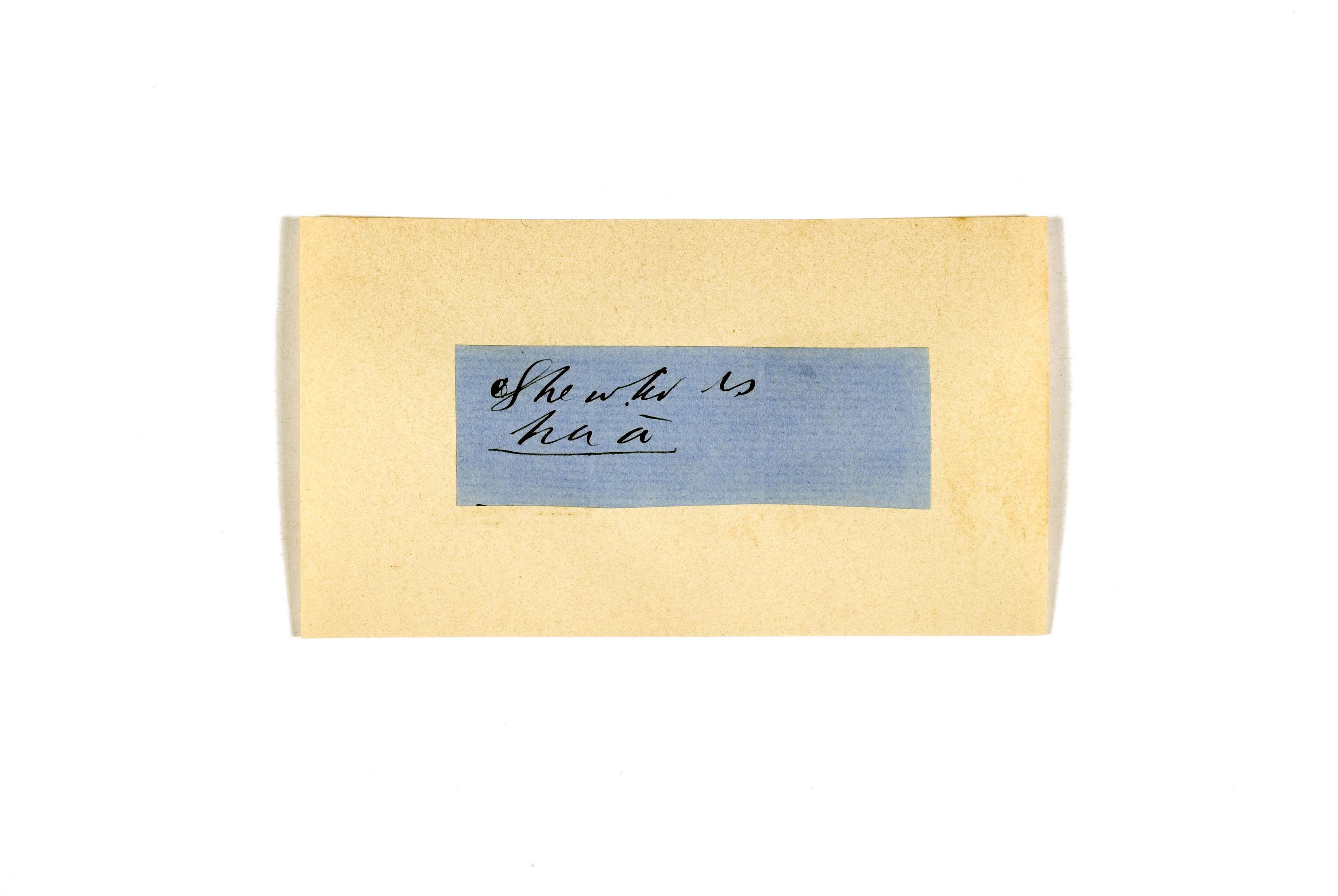 ink on blue paper glued on card