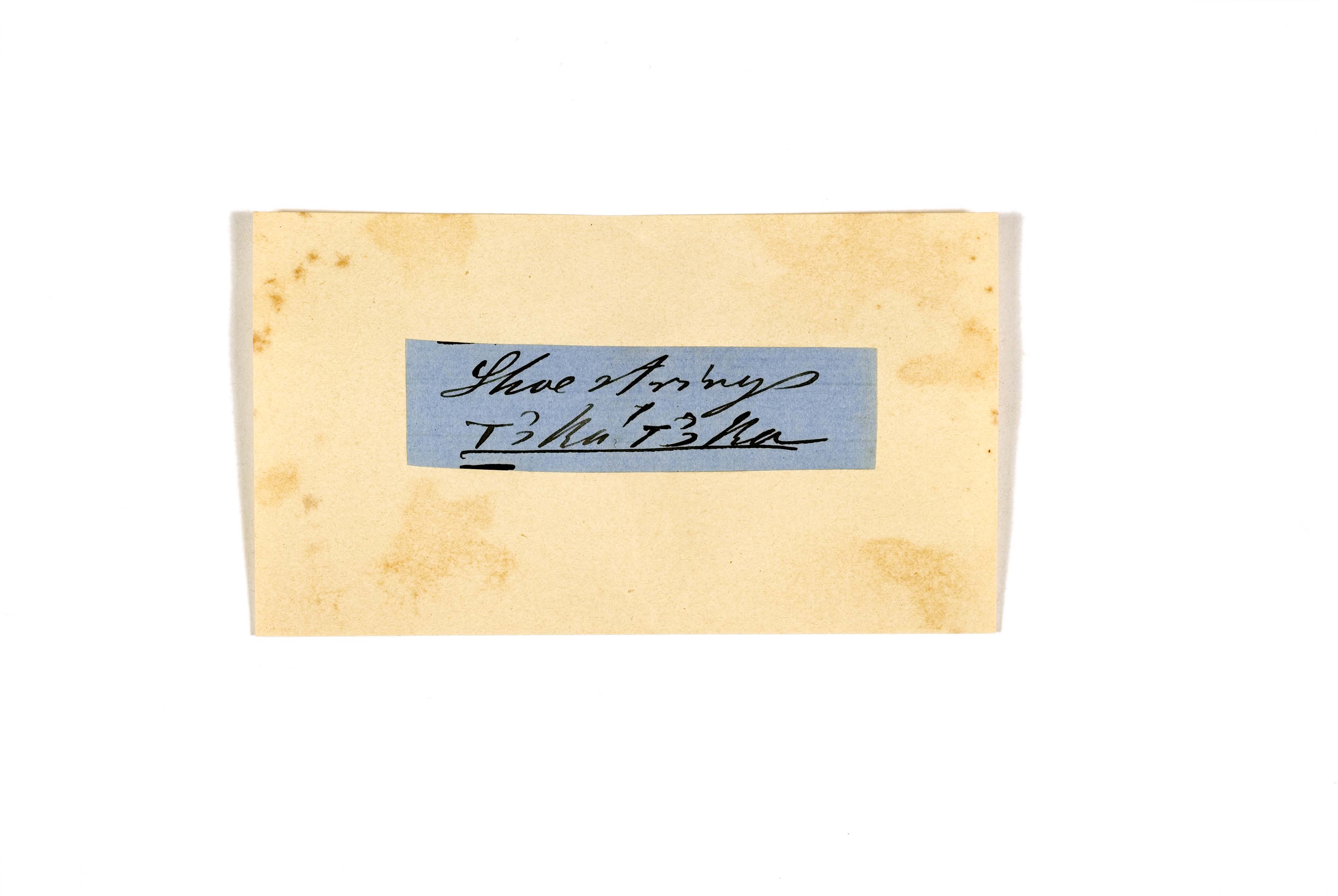 ink on blue paper glued on card