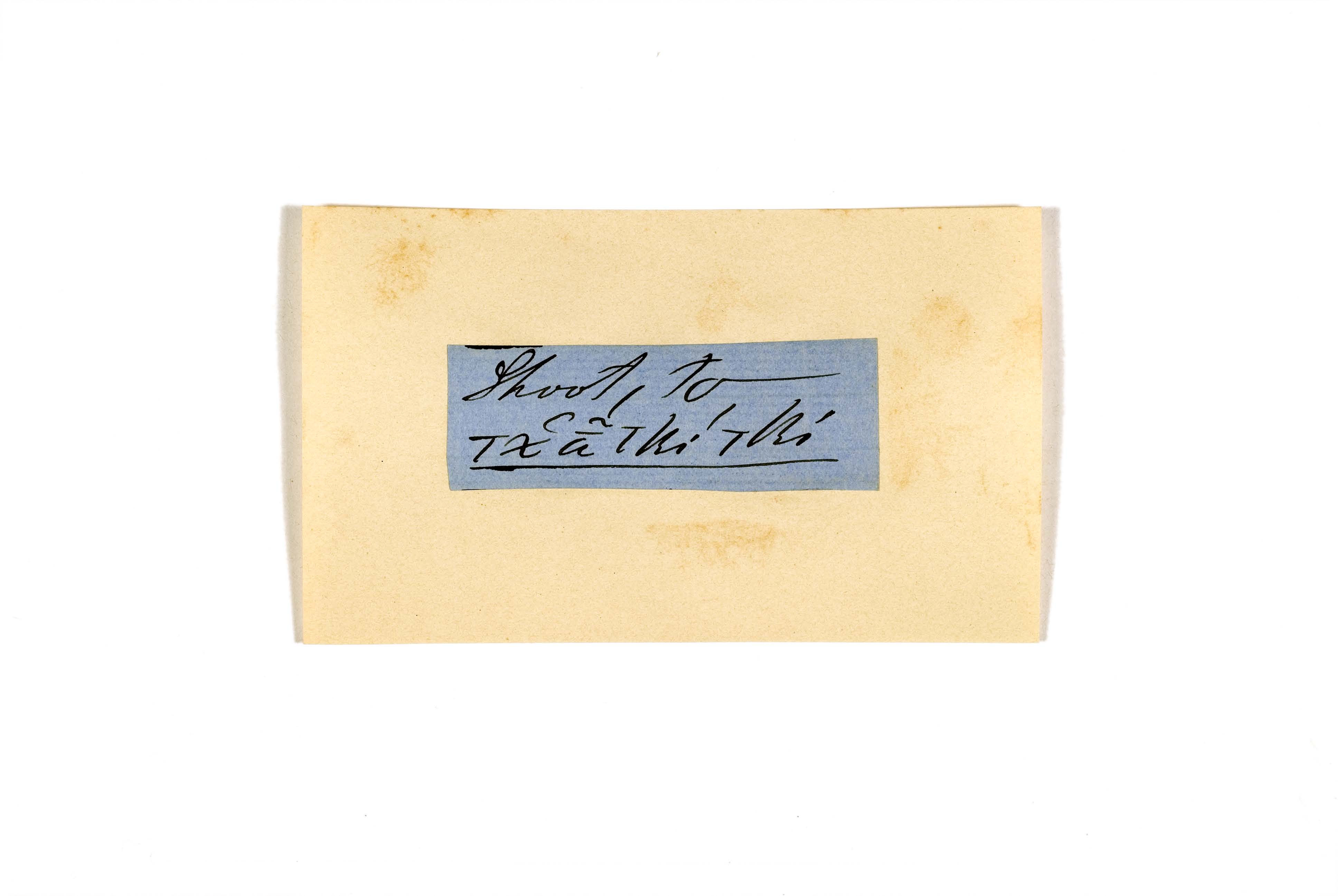 ink on blue paper glued on card