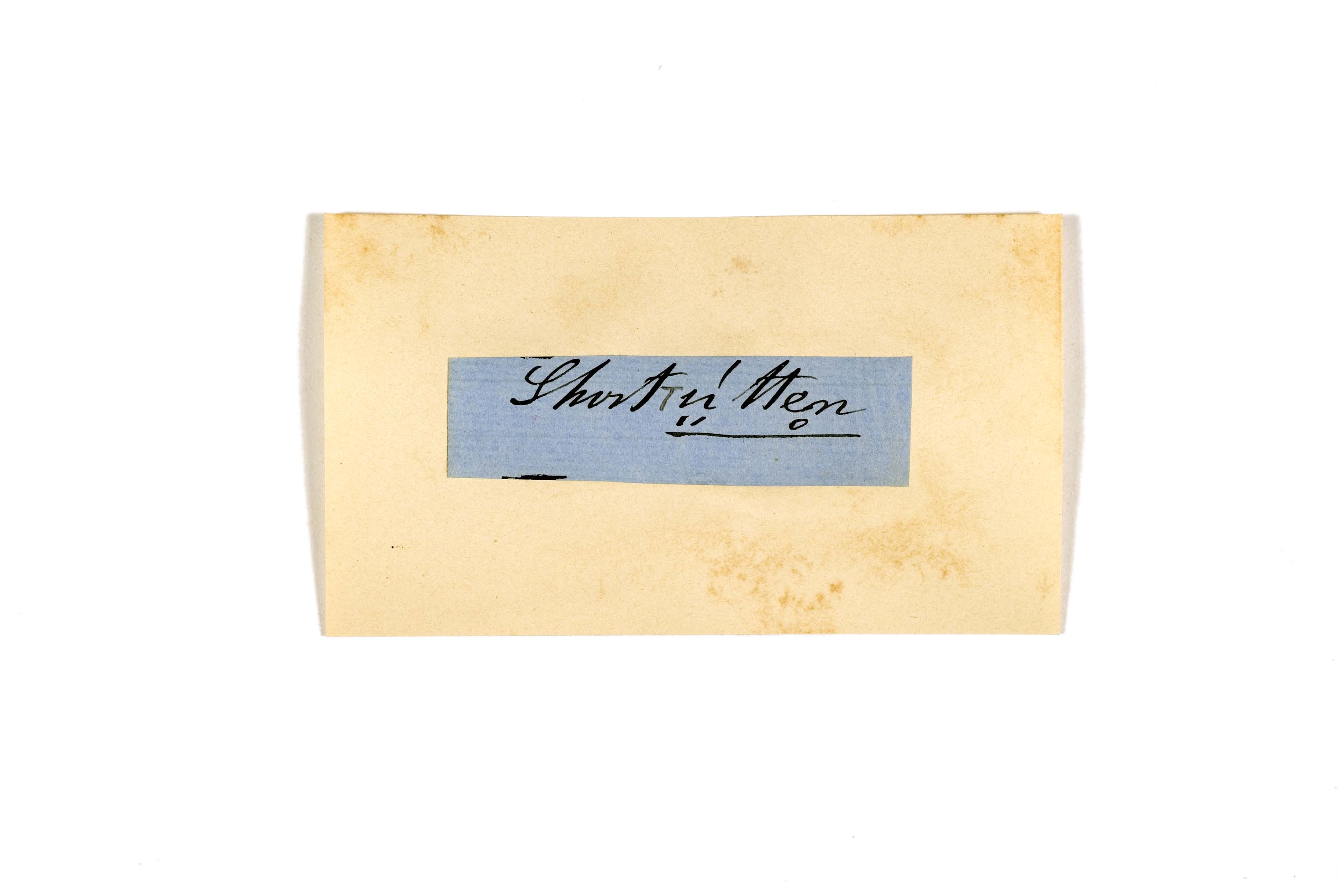 ink on blue paper glued on card