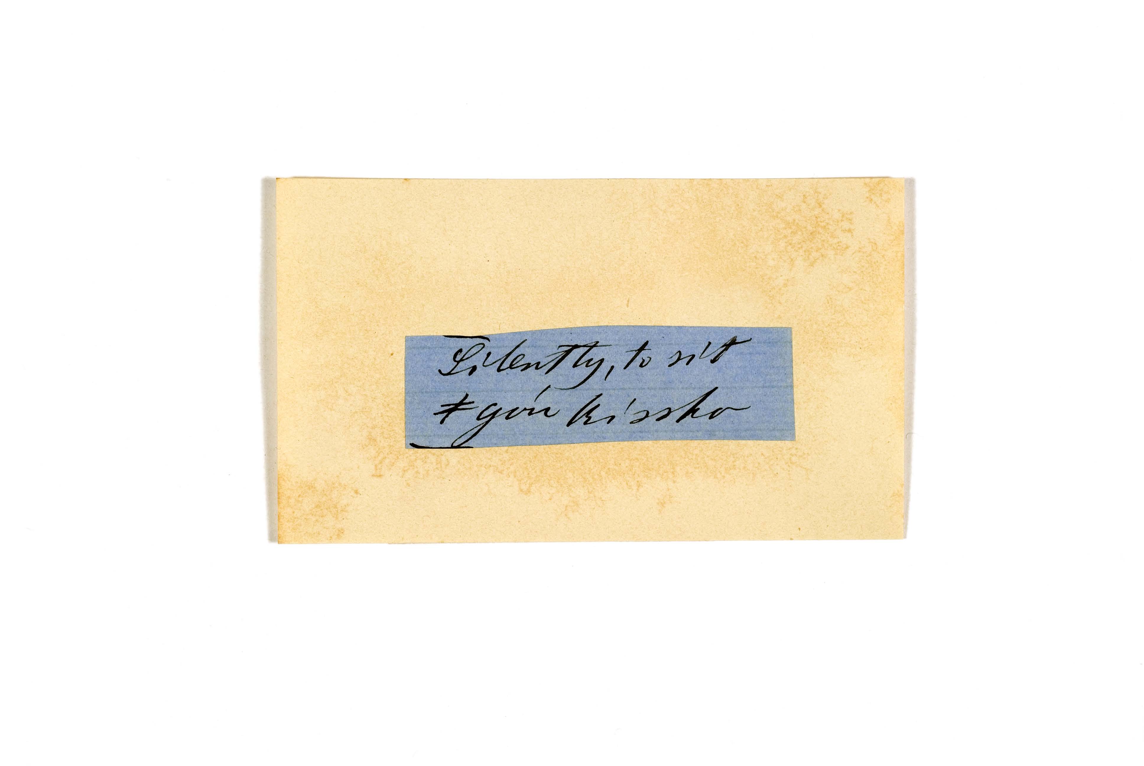 ink on blue paper glued on card