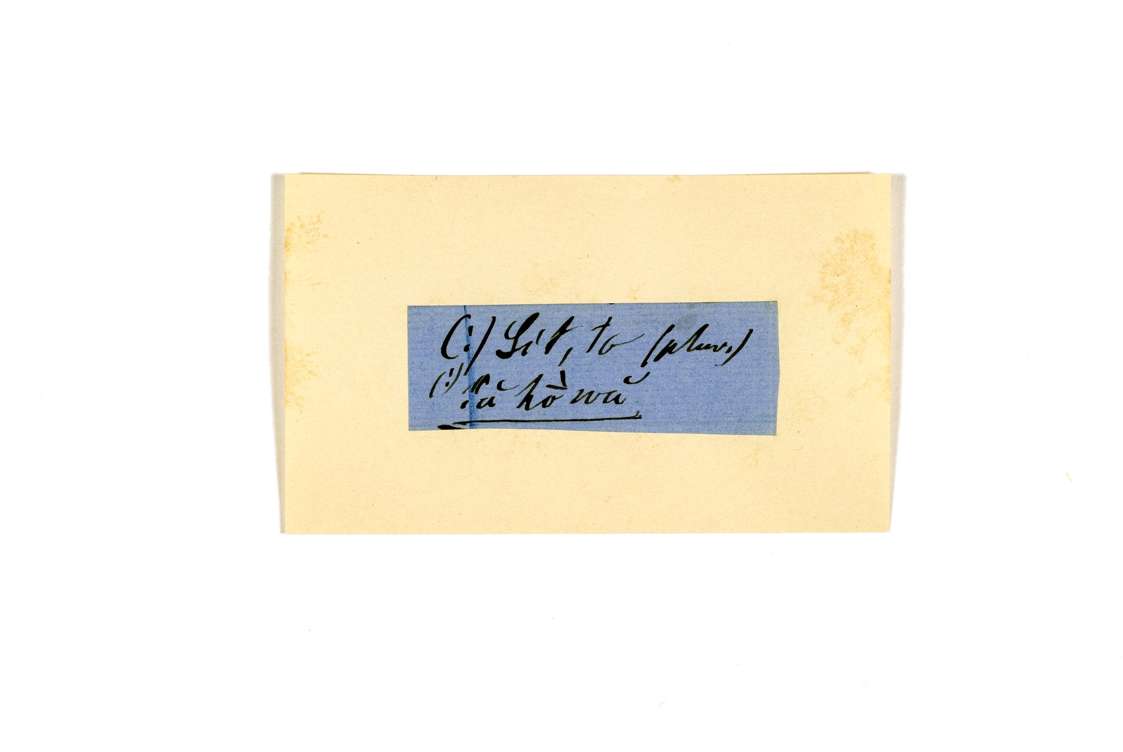ink on blue paper glued on card