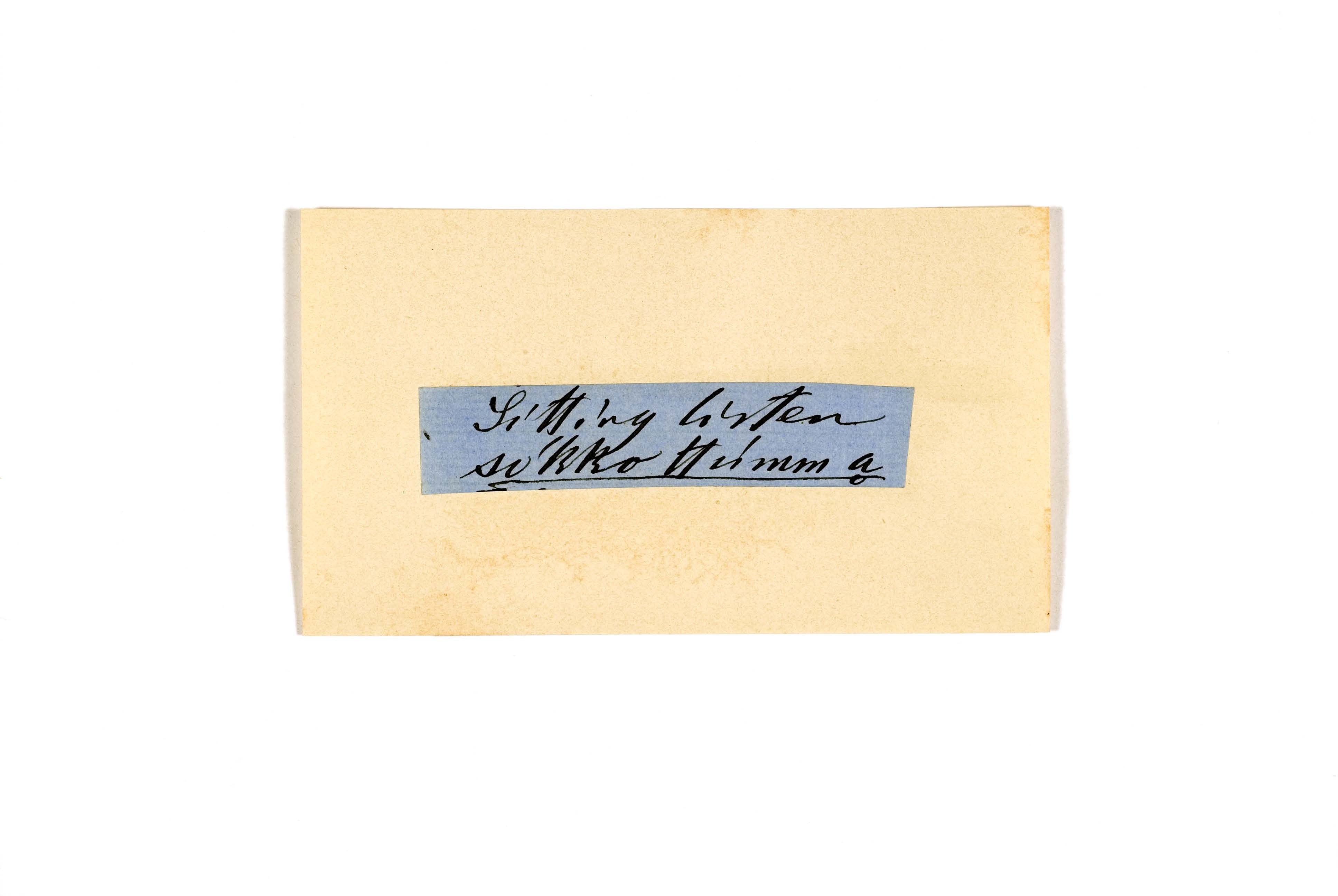 ink on blue paper glued on card
