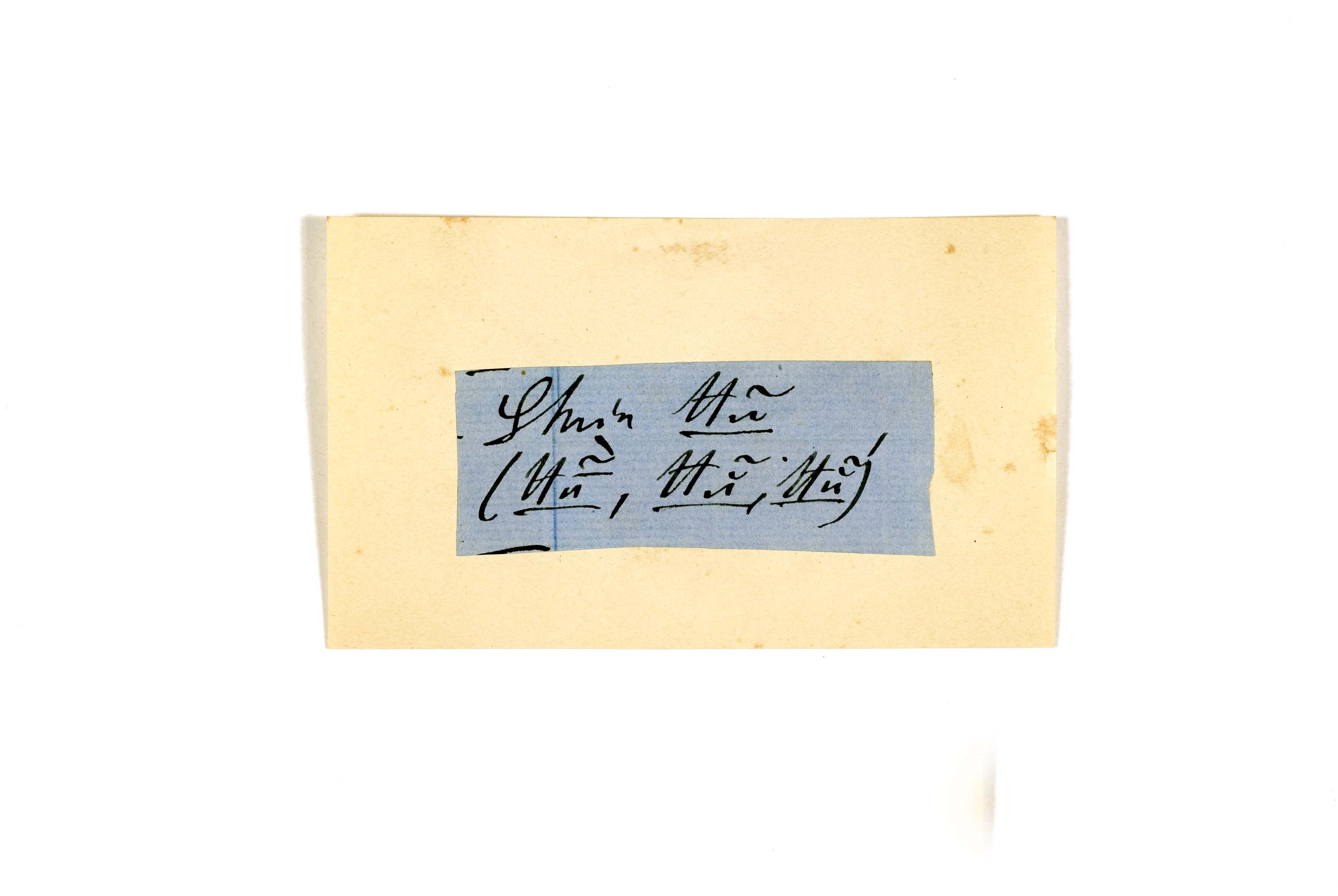 ink on blue paper glued on card