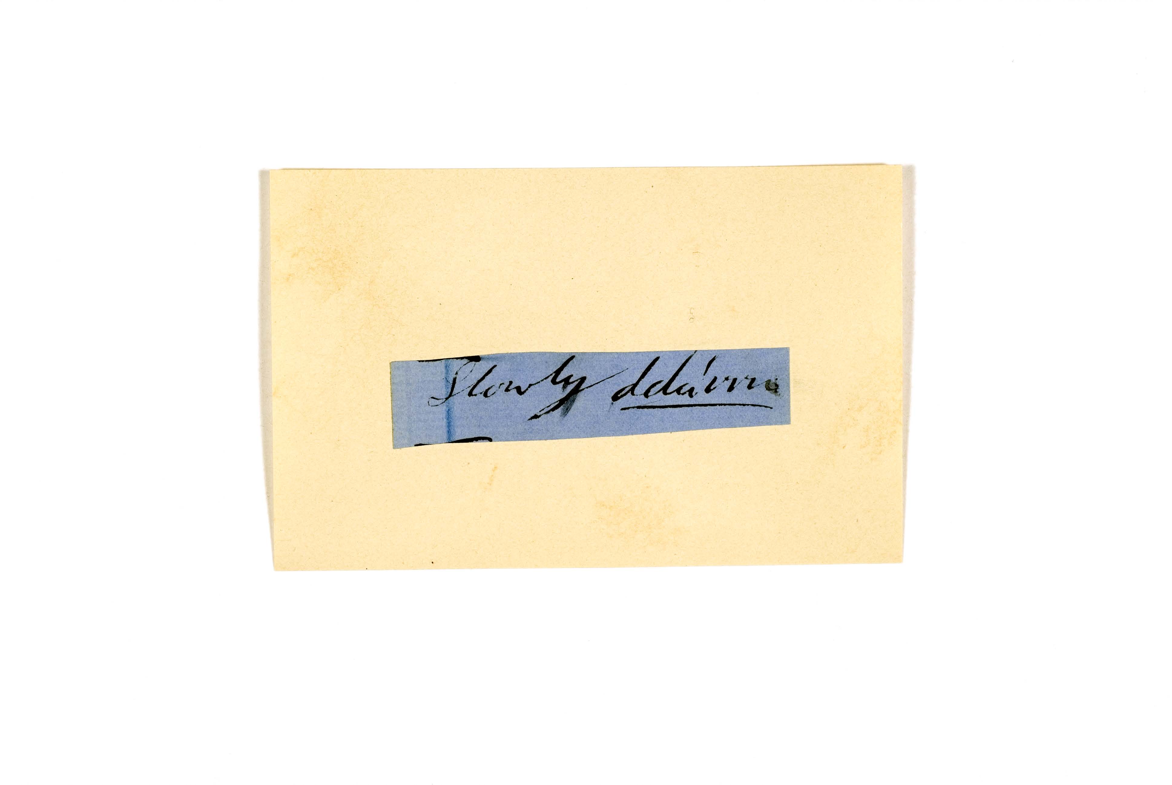 ink on blue paper glued on card