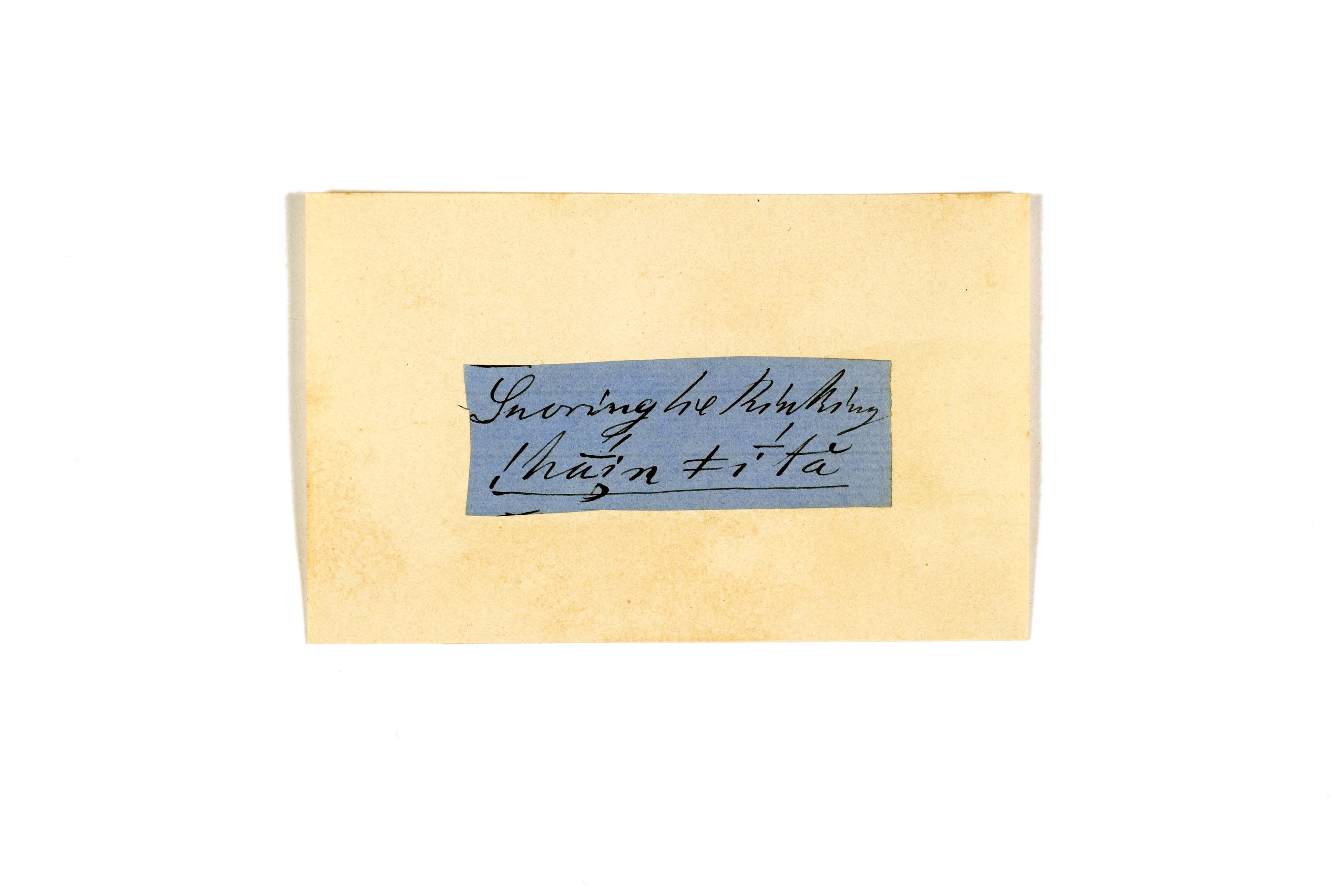 ink on blue paper glued on card