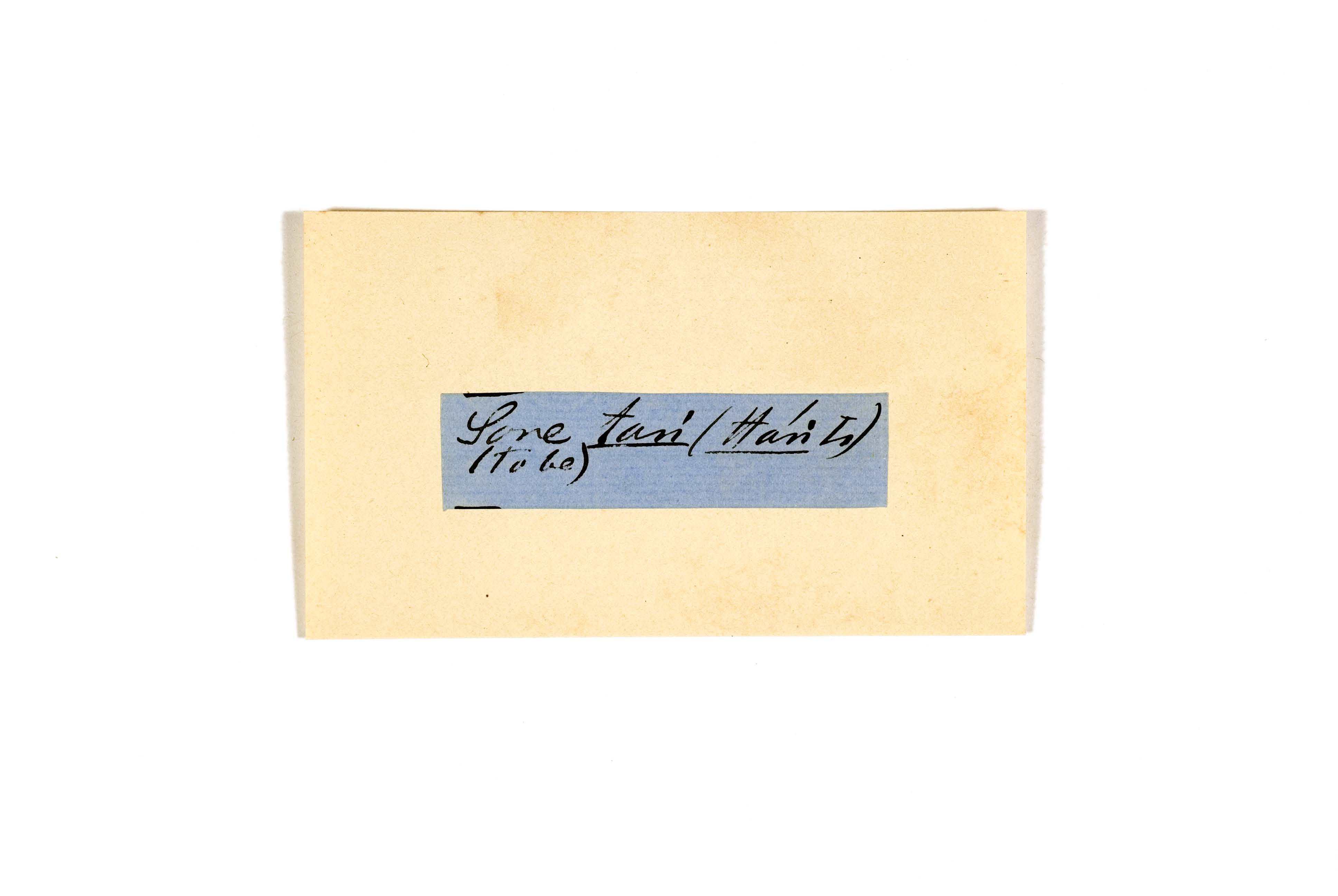 ink on blue paper glued on card