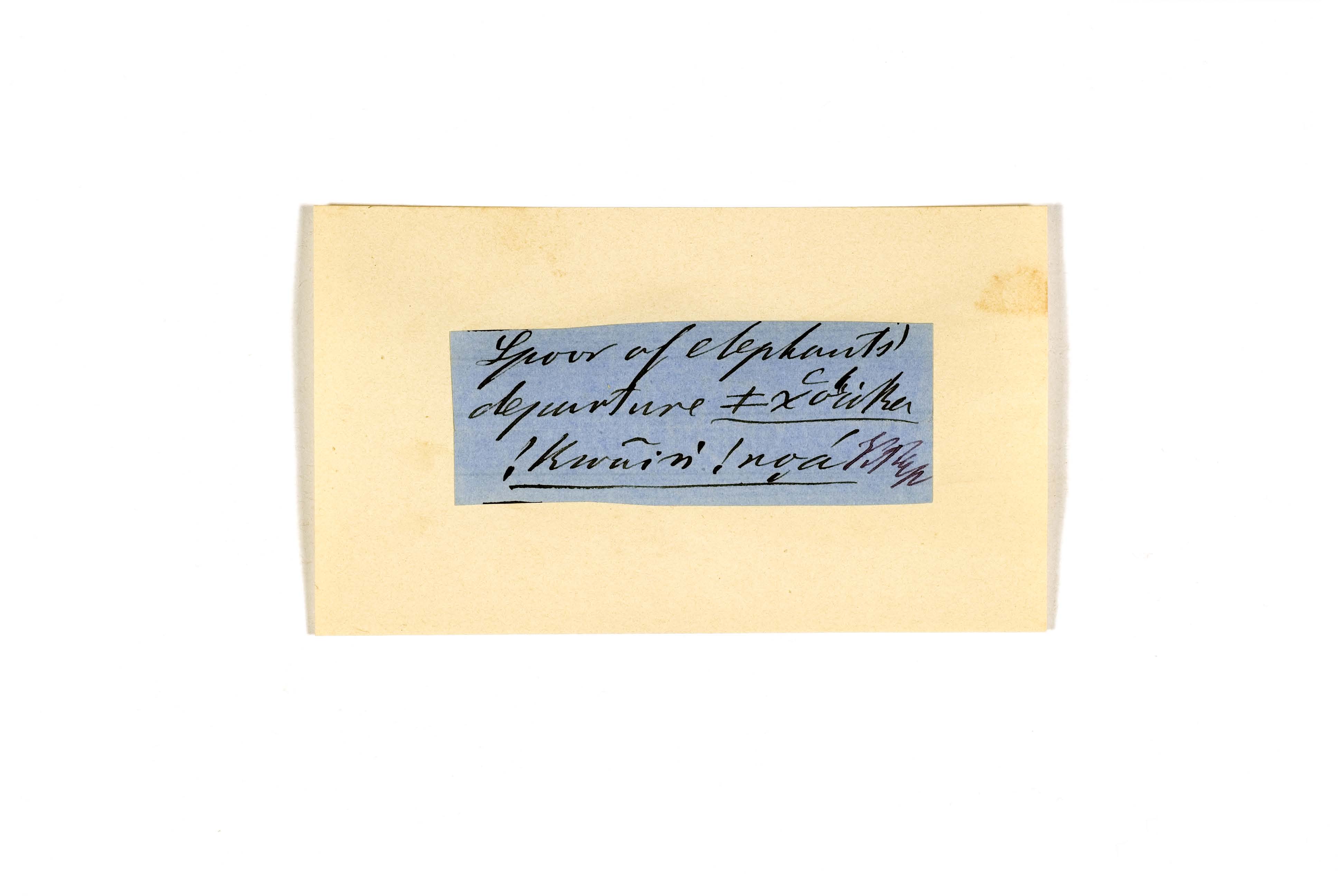 ink on blue paper glued on card
