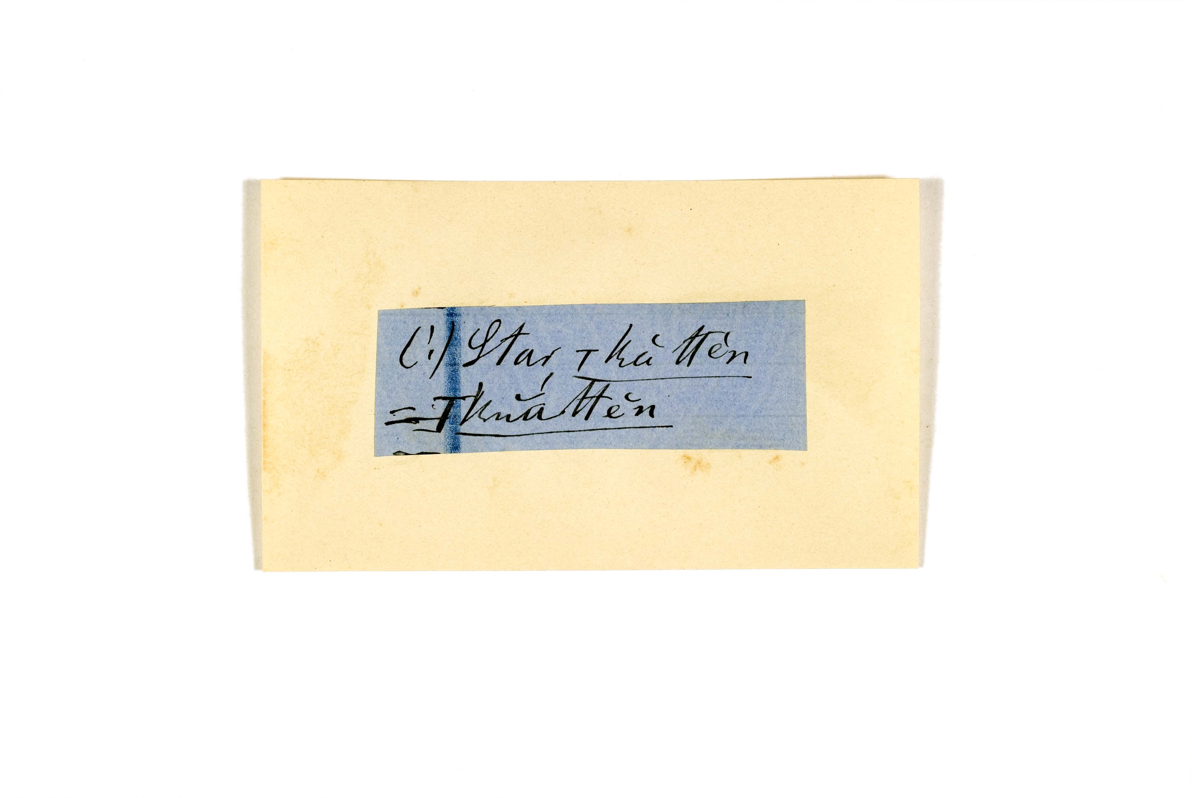 ink on blue paper glued on card