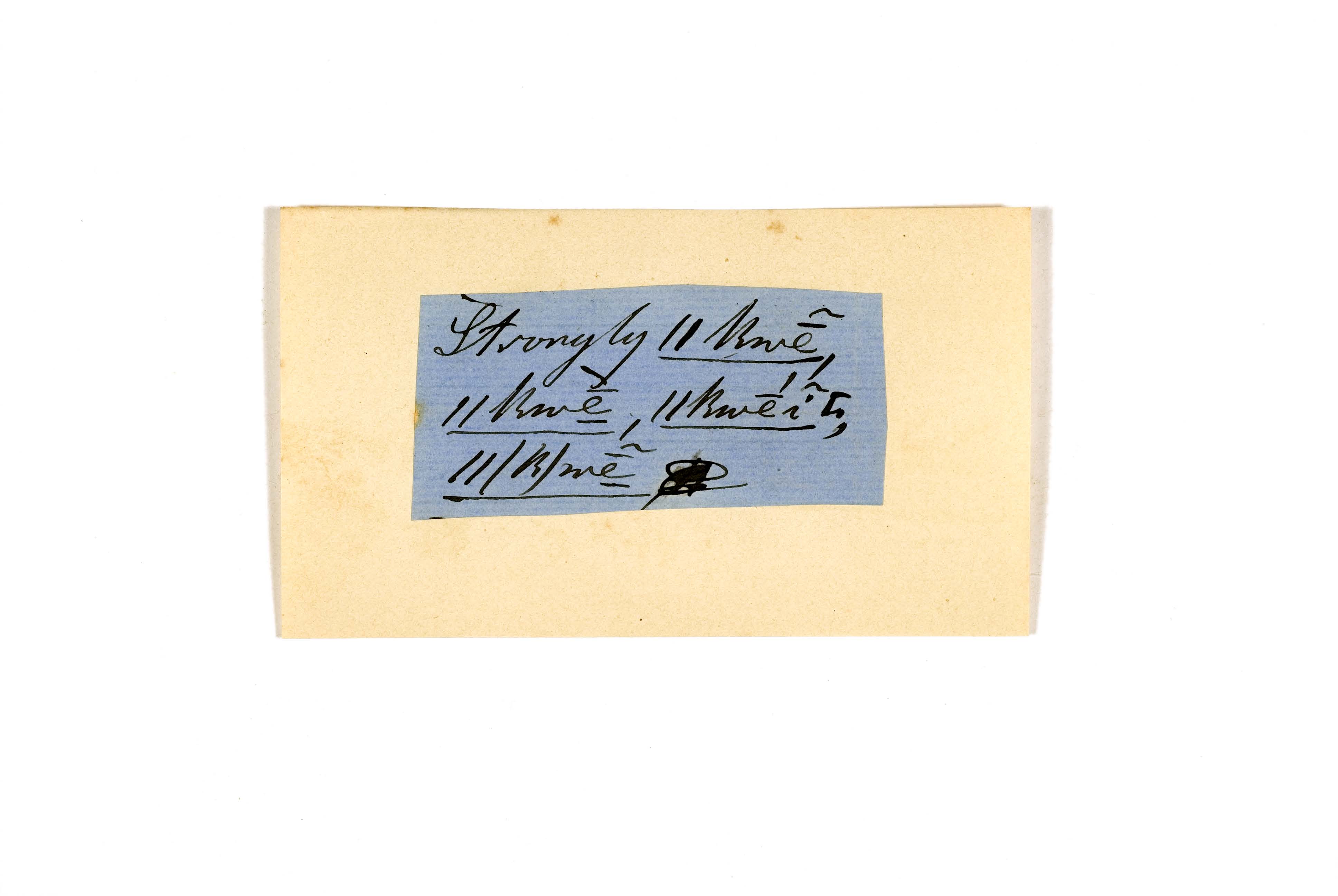 ink on blue paper glued on card