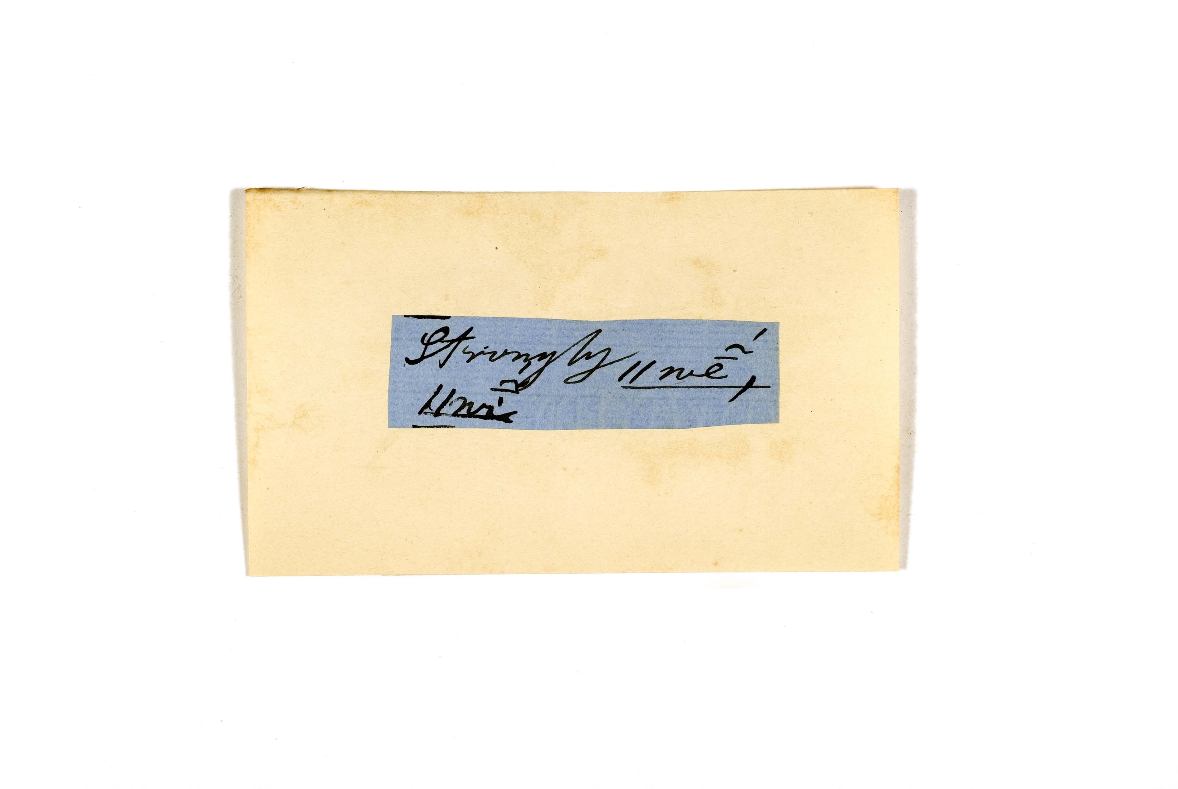 ink on blue paper glued on card