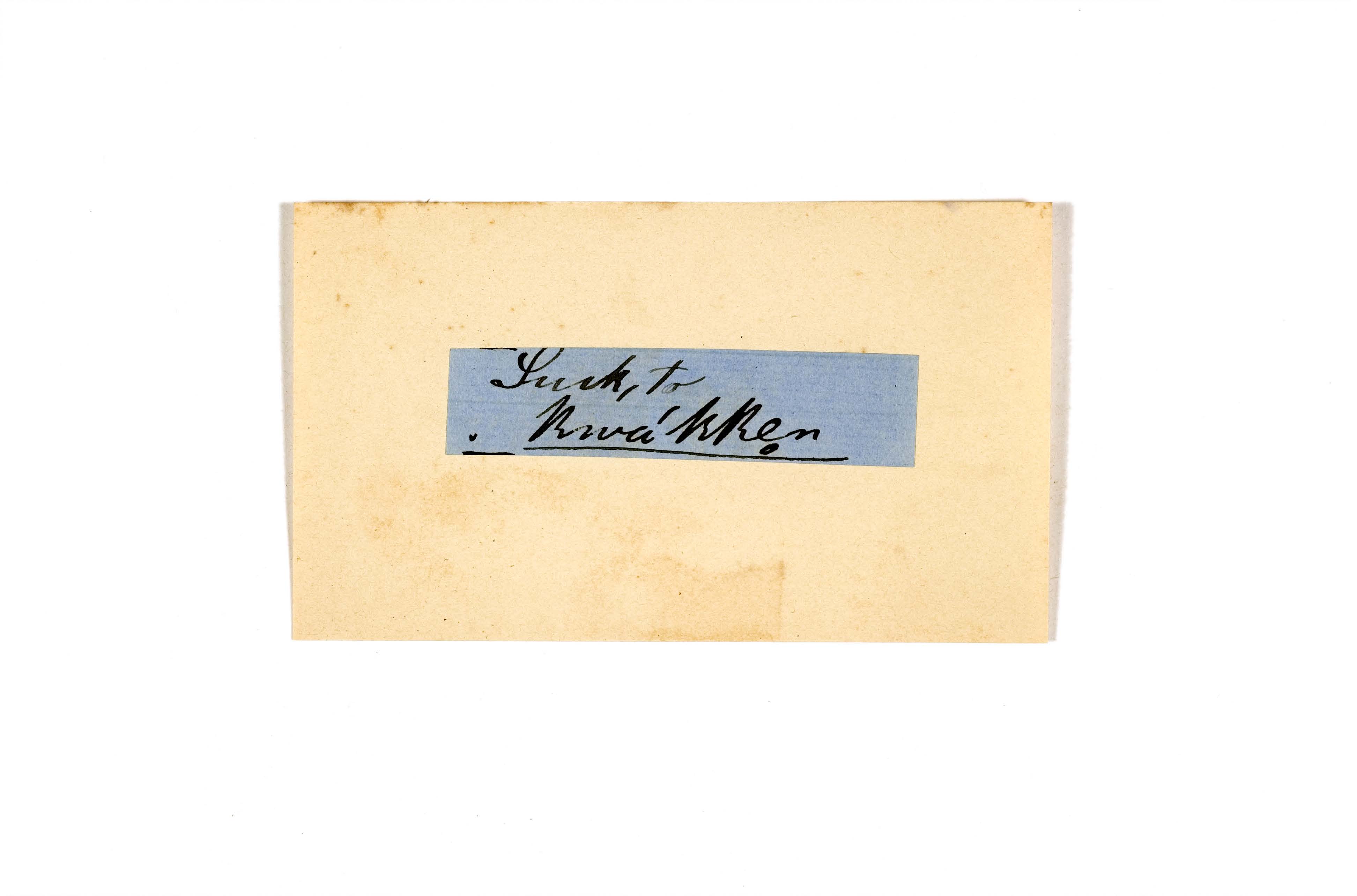 ink on blue paper glued on card