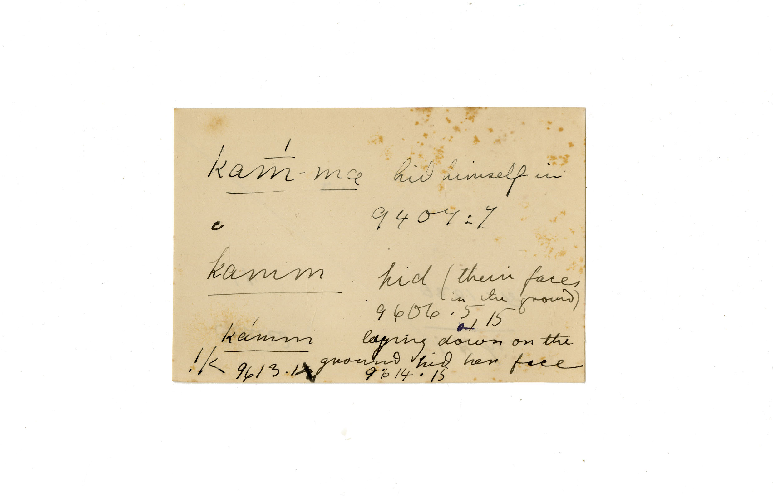 hid himself in, hid (their faces in the ground), lying down on the ground hid her face