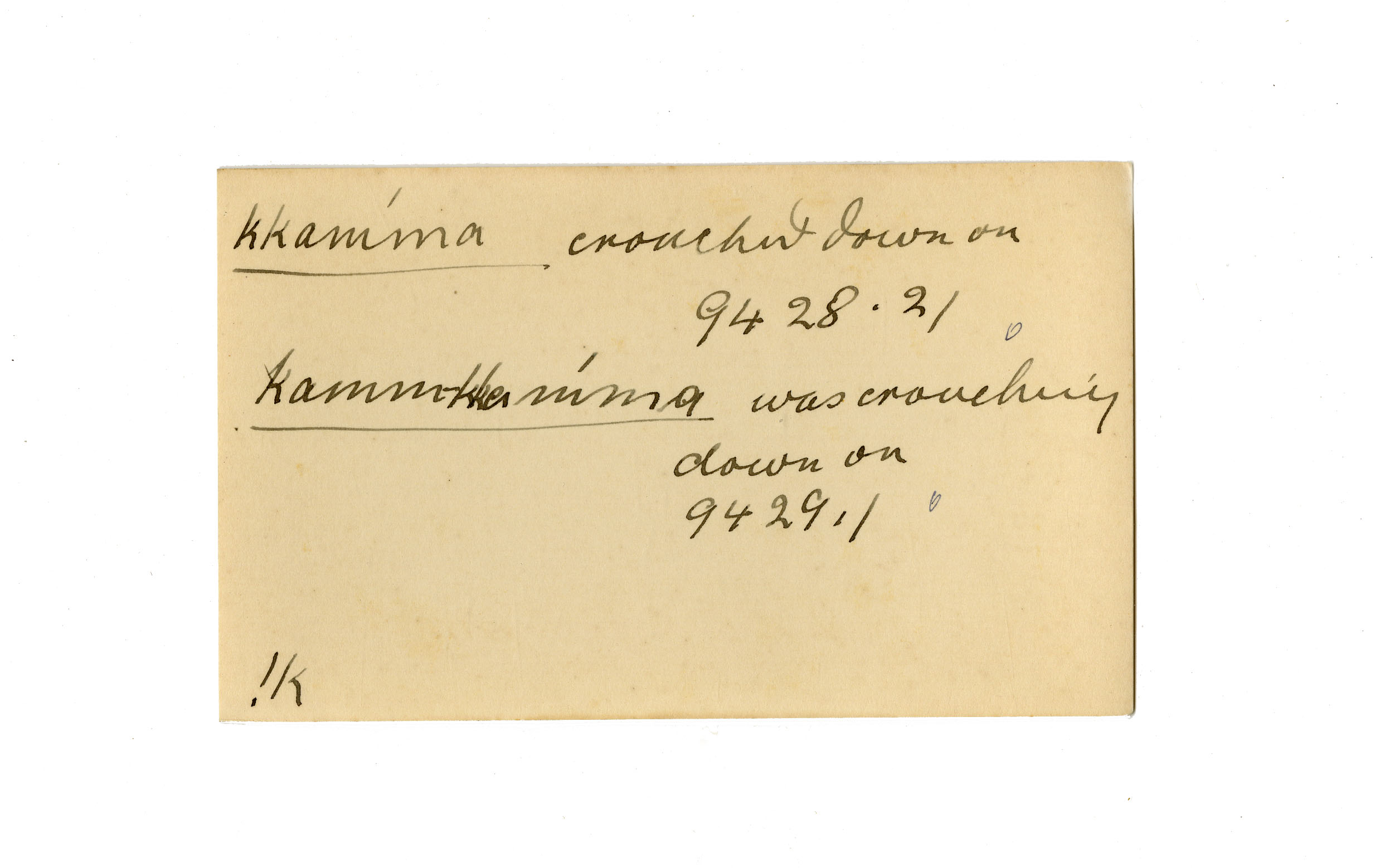crouched down on, crouching down on (was)