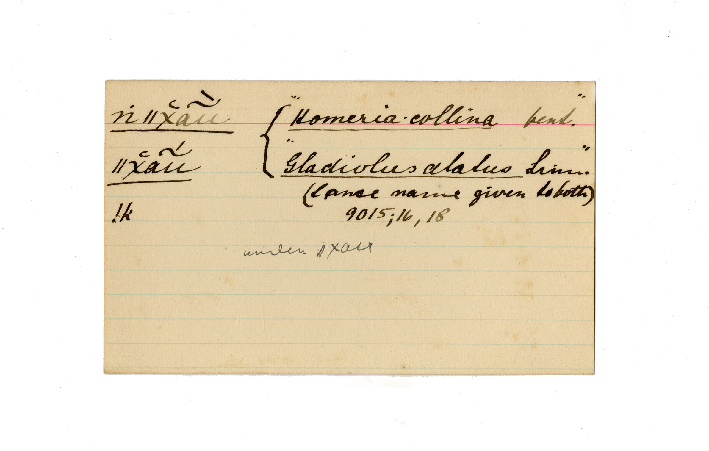 Homeria collina, Gladiolus alatus Linn. ([illegible] name given to both)