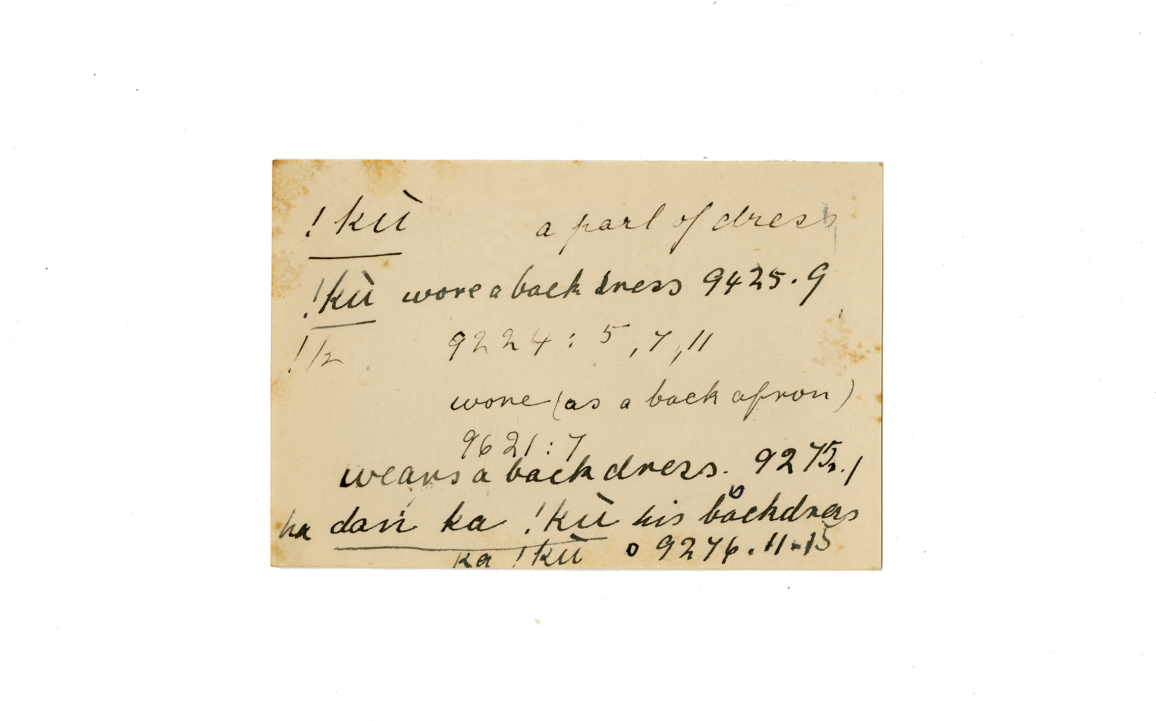 wore (as a back apron ), back dress (his ), dress (a part of)