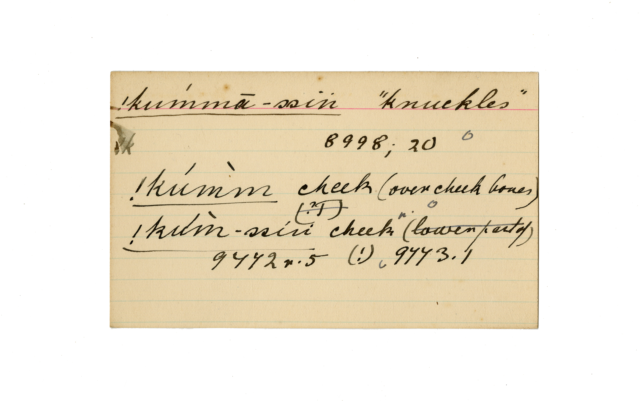 knuckles, cheek (over cheek bones)