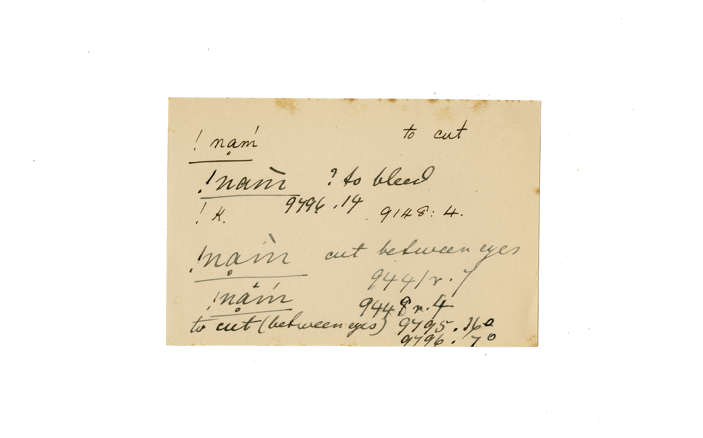 !_492 cut (to) (between eyes)