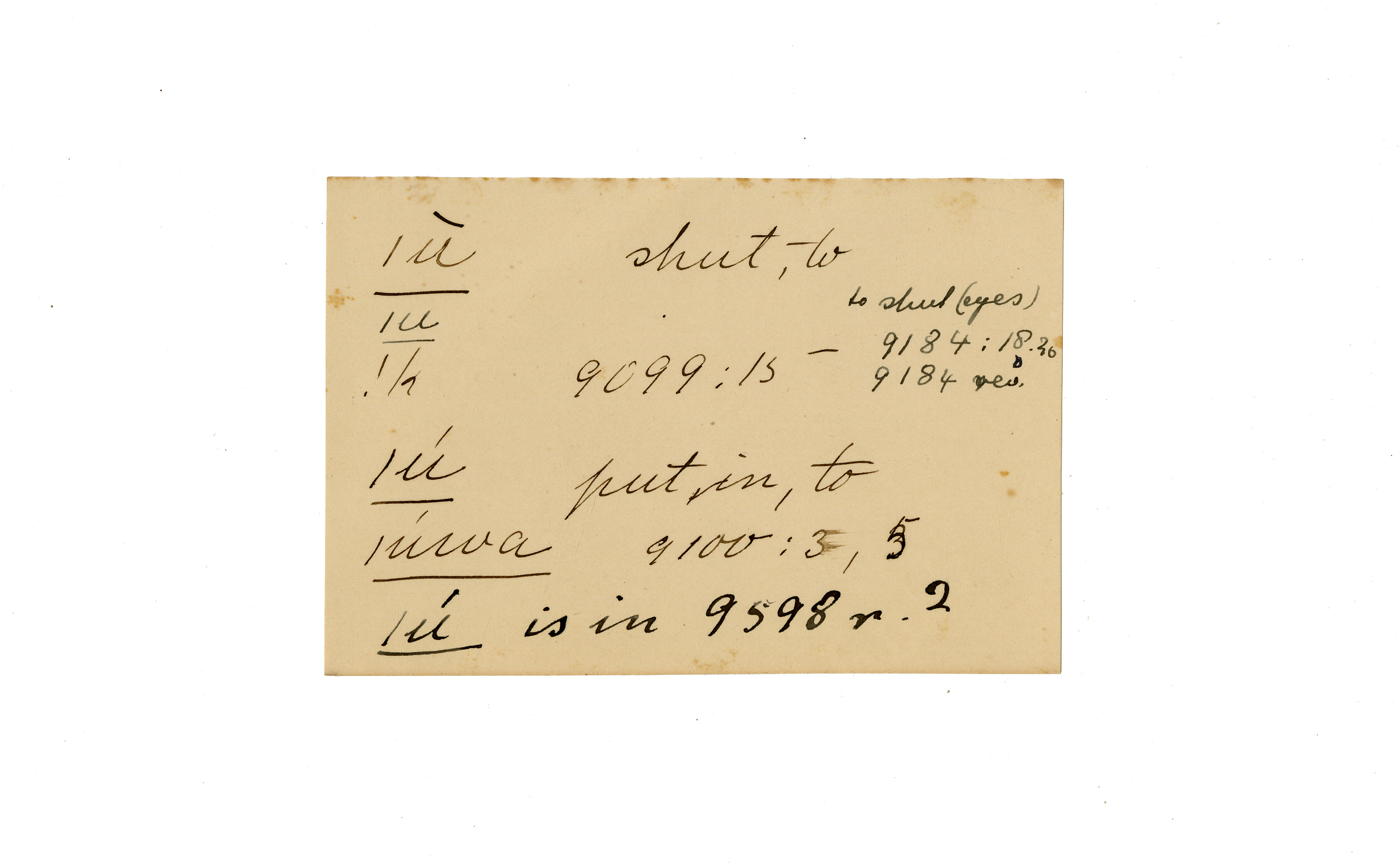 shut (to ), put in (to), in (is)