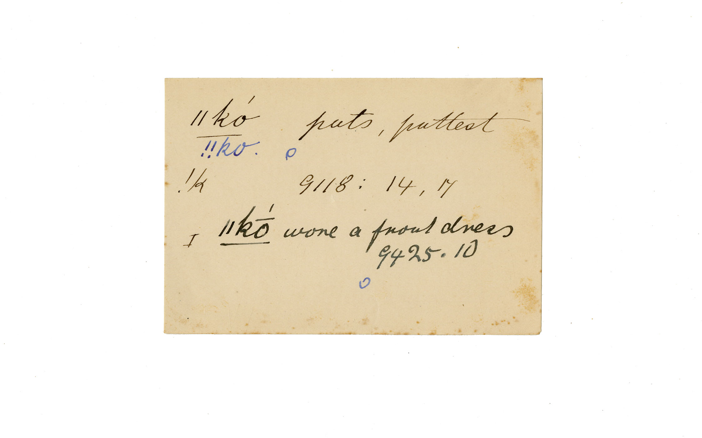 puts, puttest, wore (a front dress), front dress (wore a)