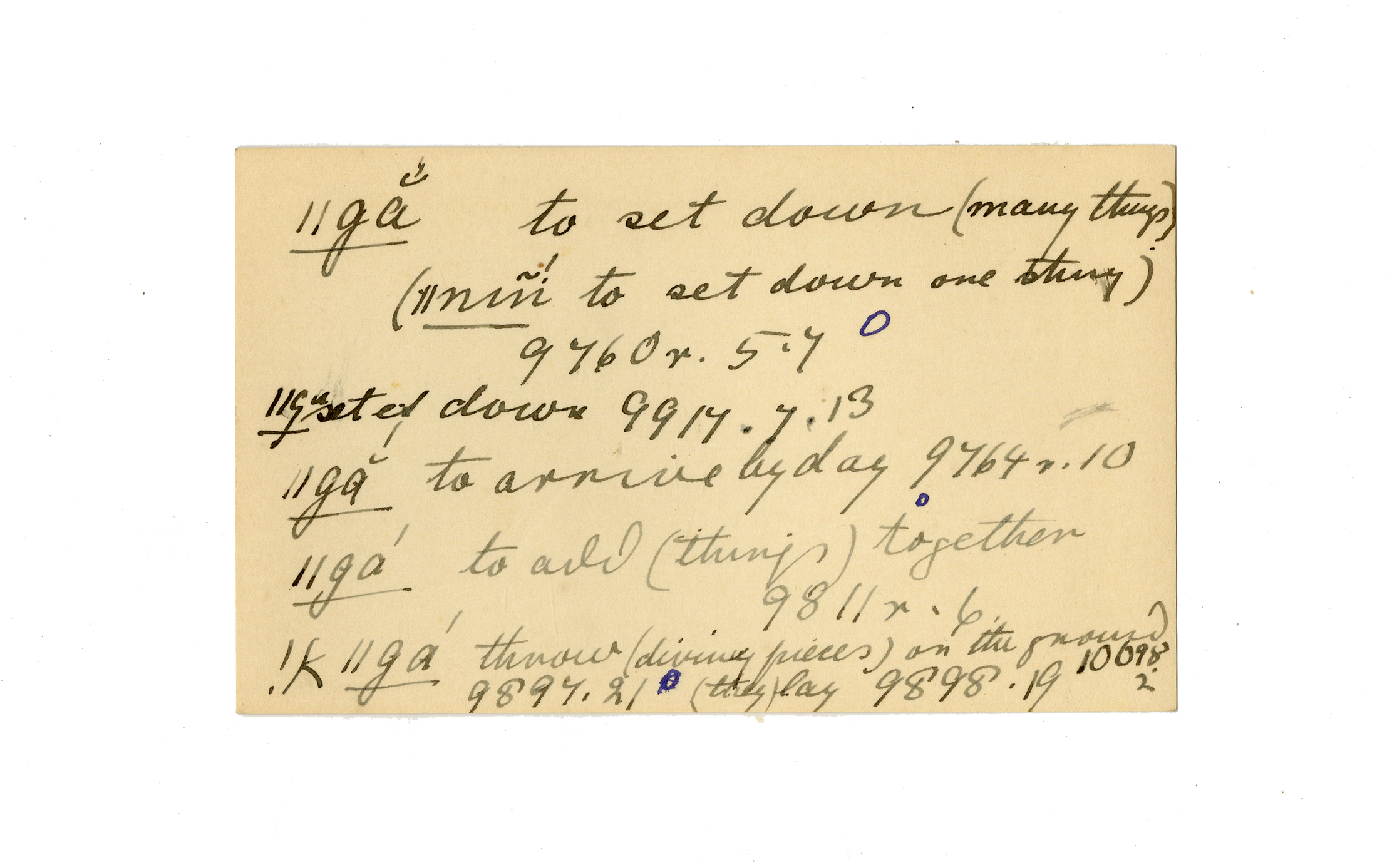 set down (to ), arrive by day (to), add together (to ), throw on the ground (divining pieces), lay (they)