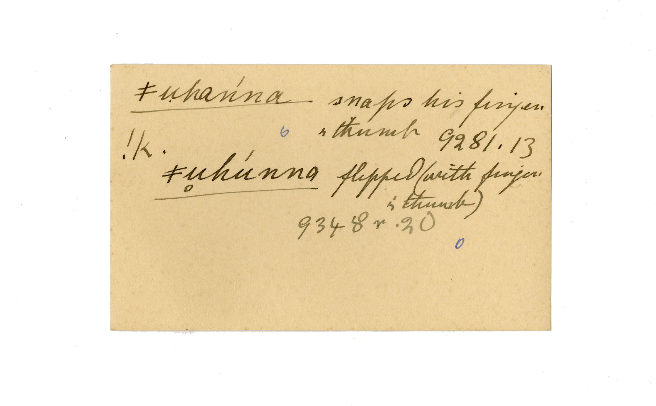 snaps (his finger and thumb), flipped (with finger and thumb)