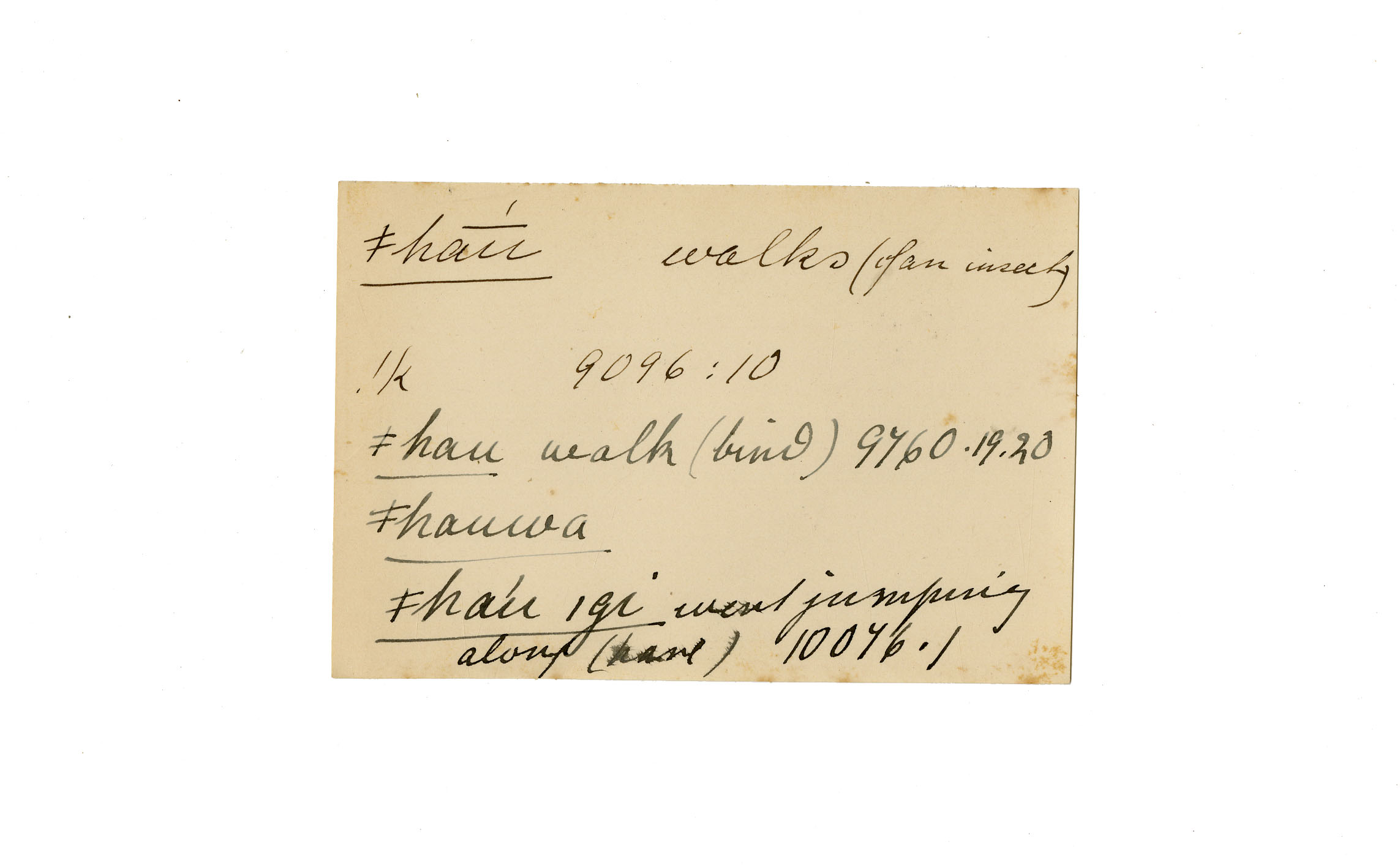 walks (of an insect), walk (bird), went jumping along (hare)