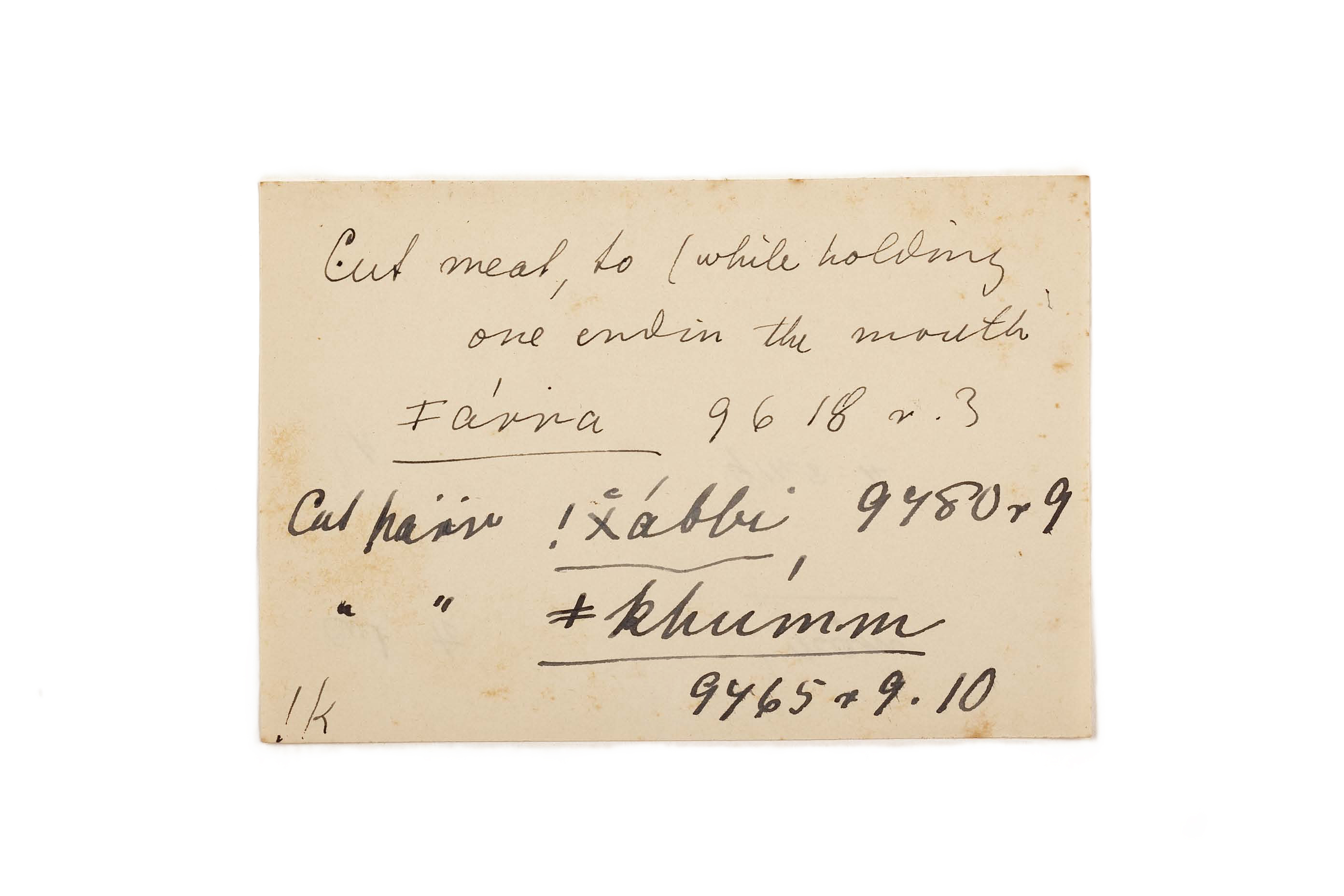 cut meat (while holding one end in the mouth ), cut hair [?]