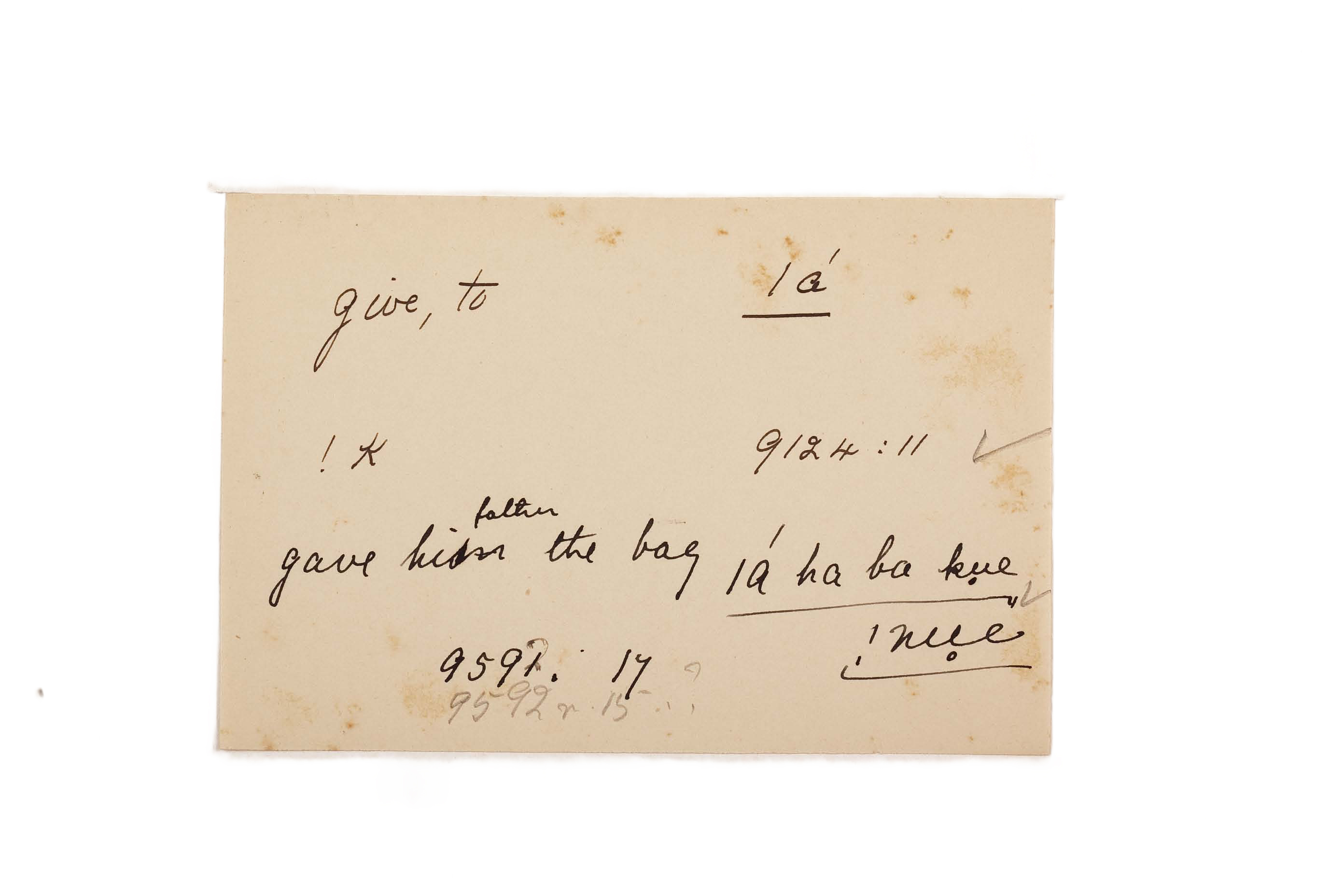 give (to), gave him/father the bag