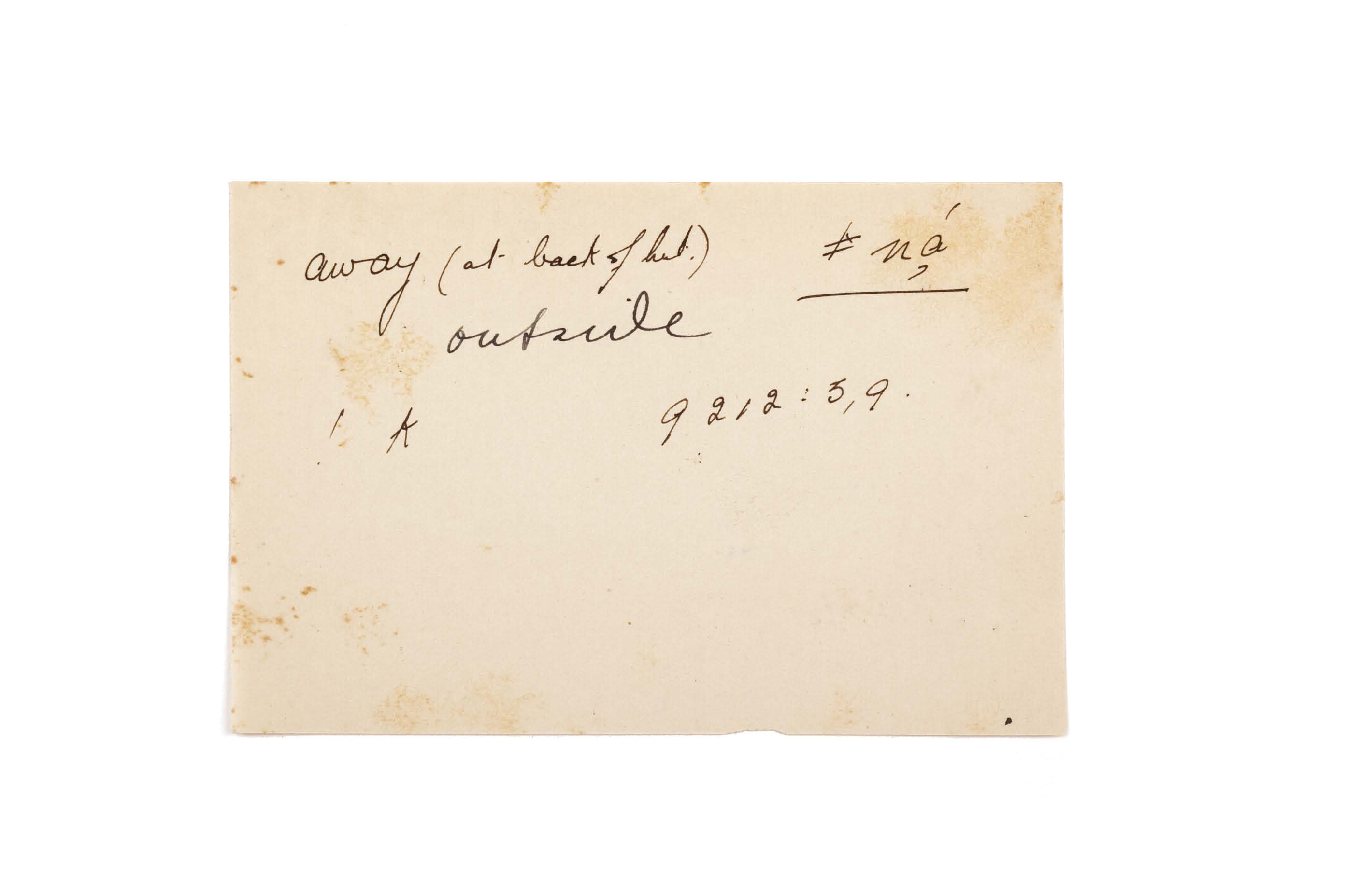 outside, away (at back of hut)
