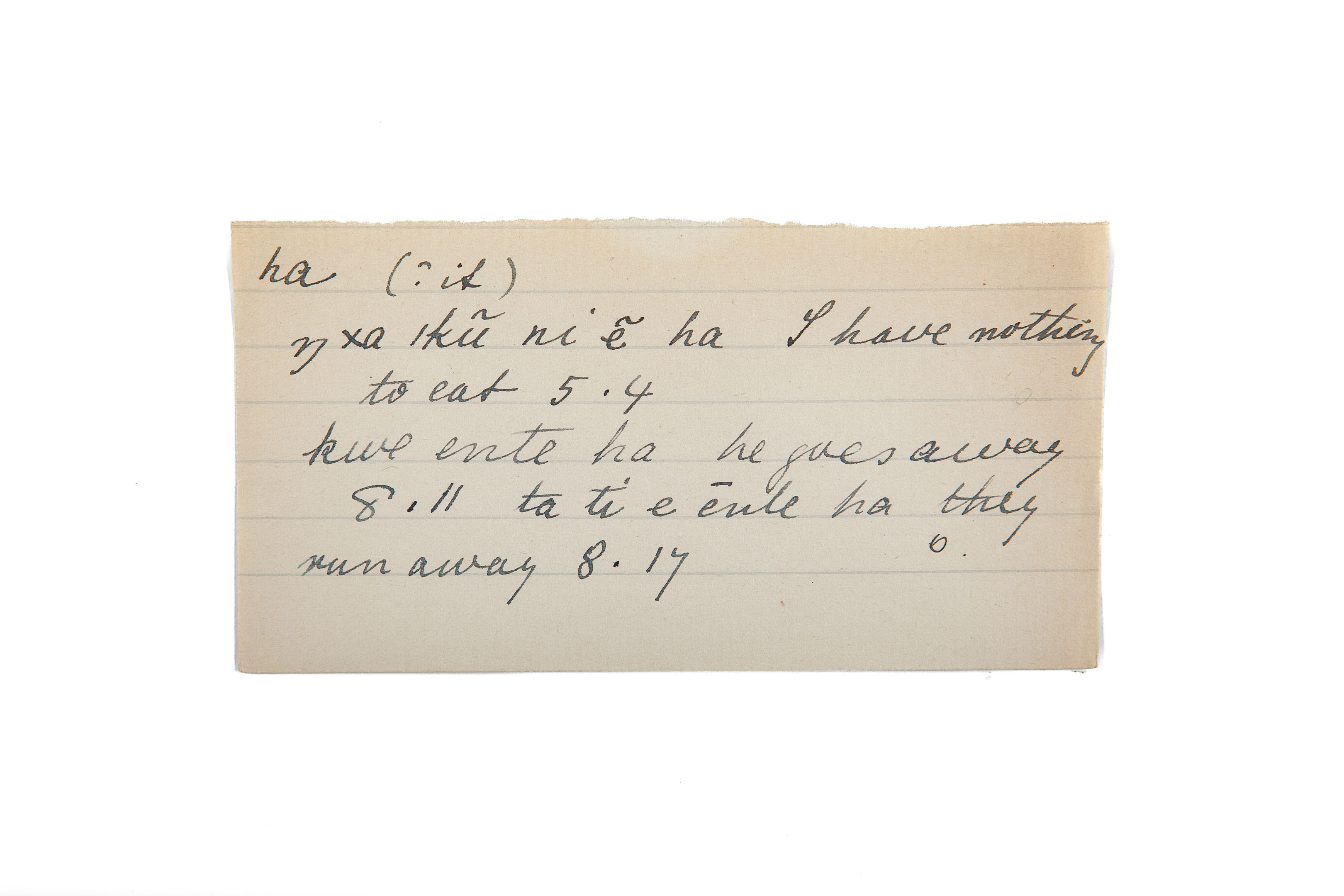 nothing to eat (I have), away (he goes), run away (they)