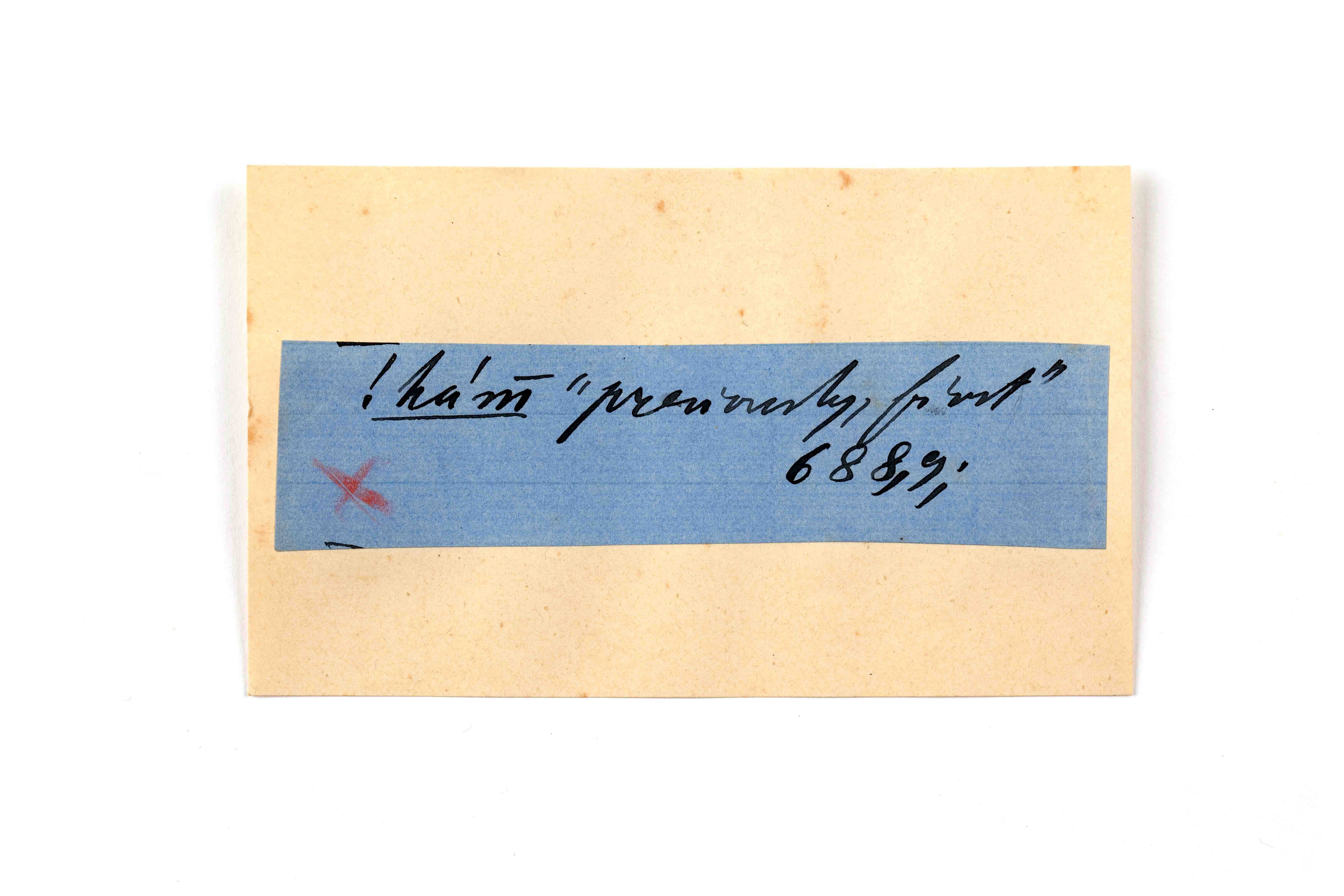 ink on blue paper glued on card