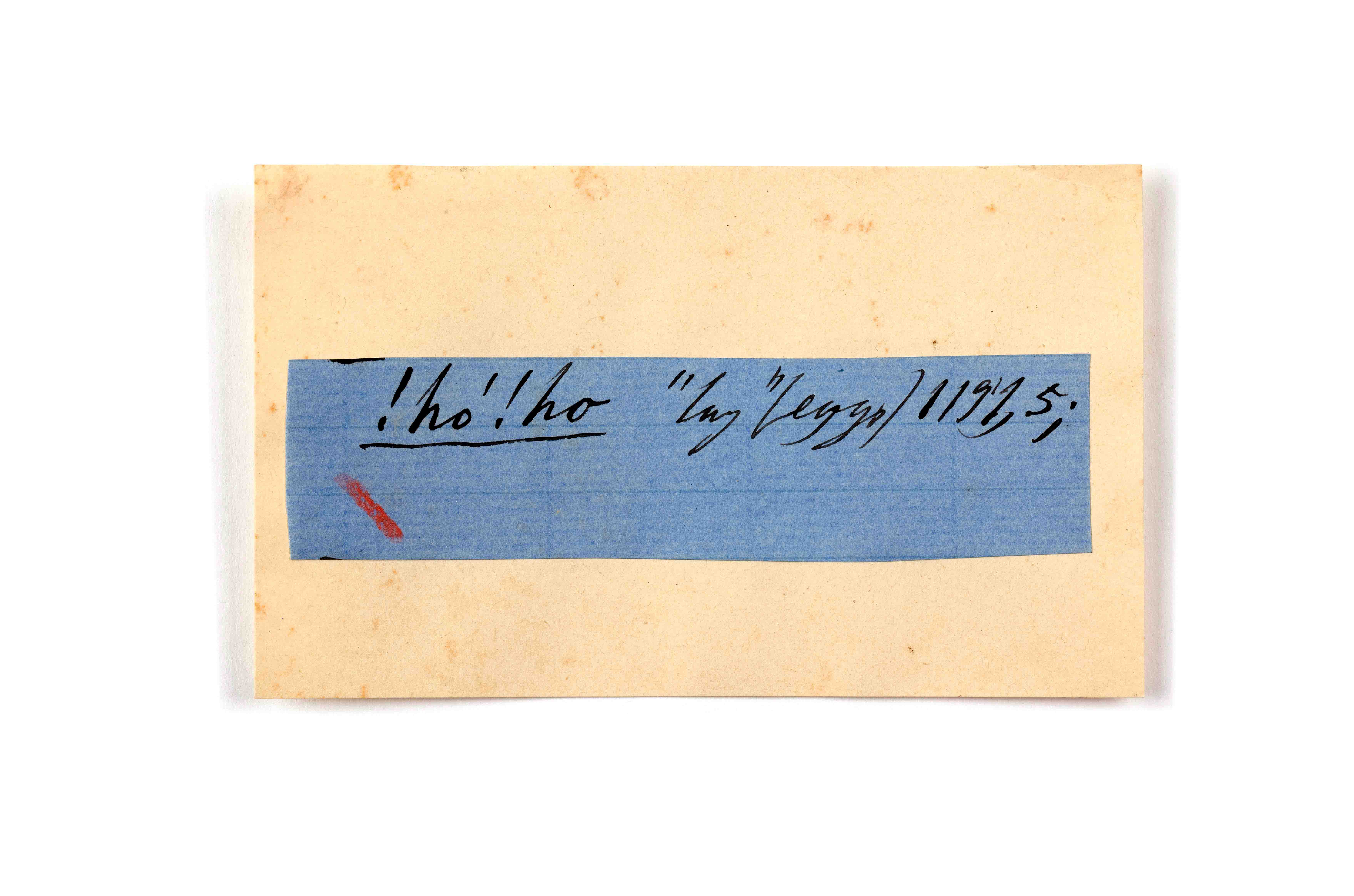 ink on blue paper glued on card