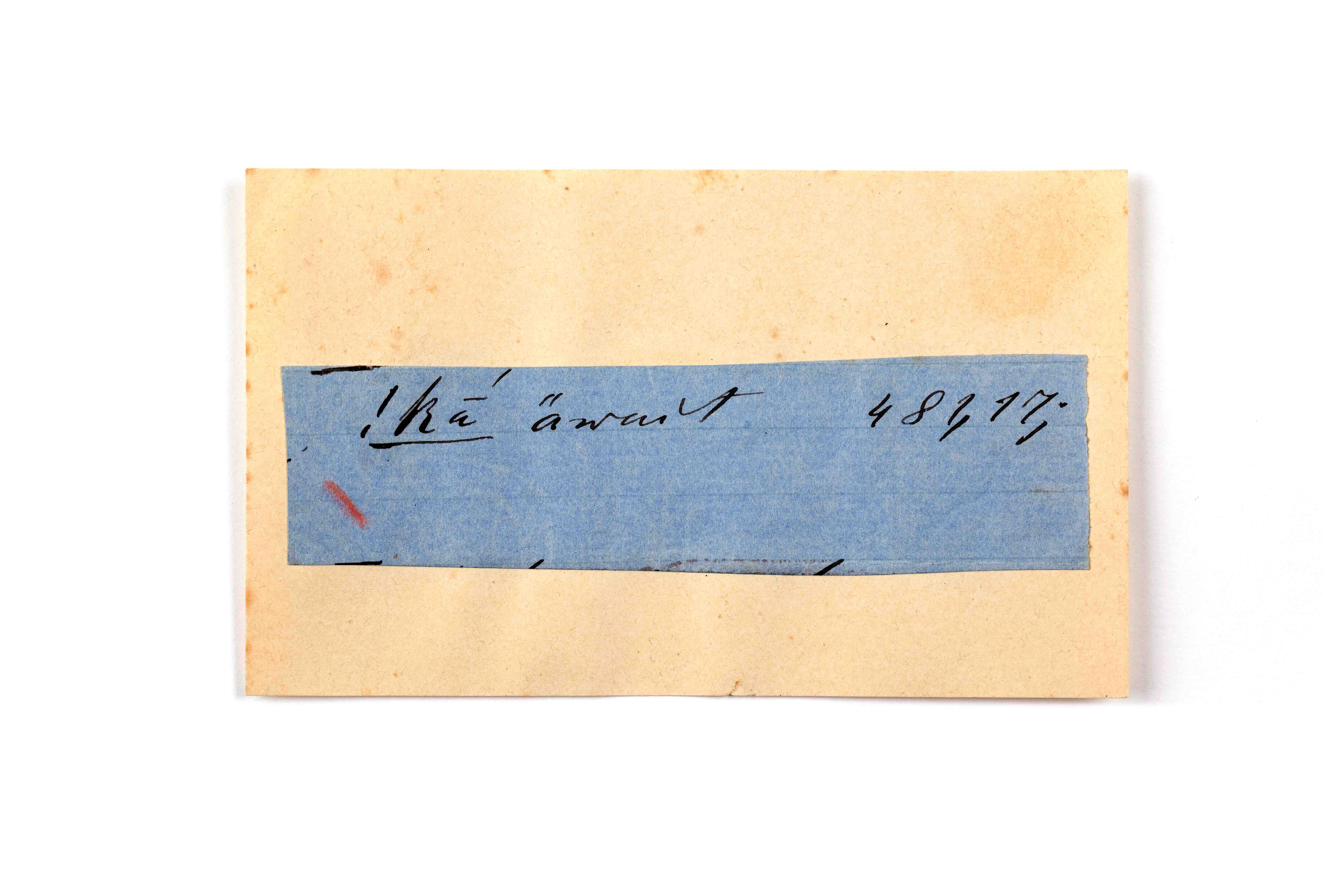 ink on blue paper glued on card
