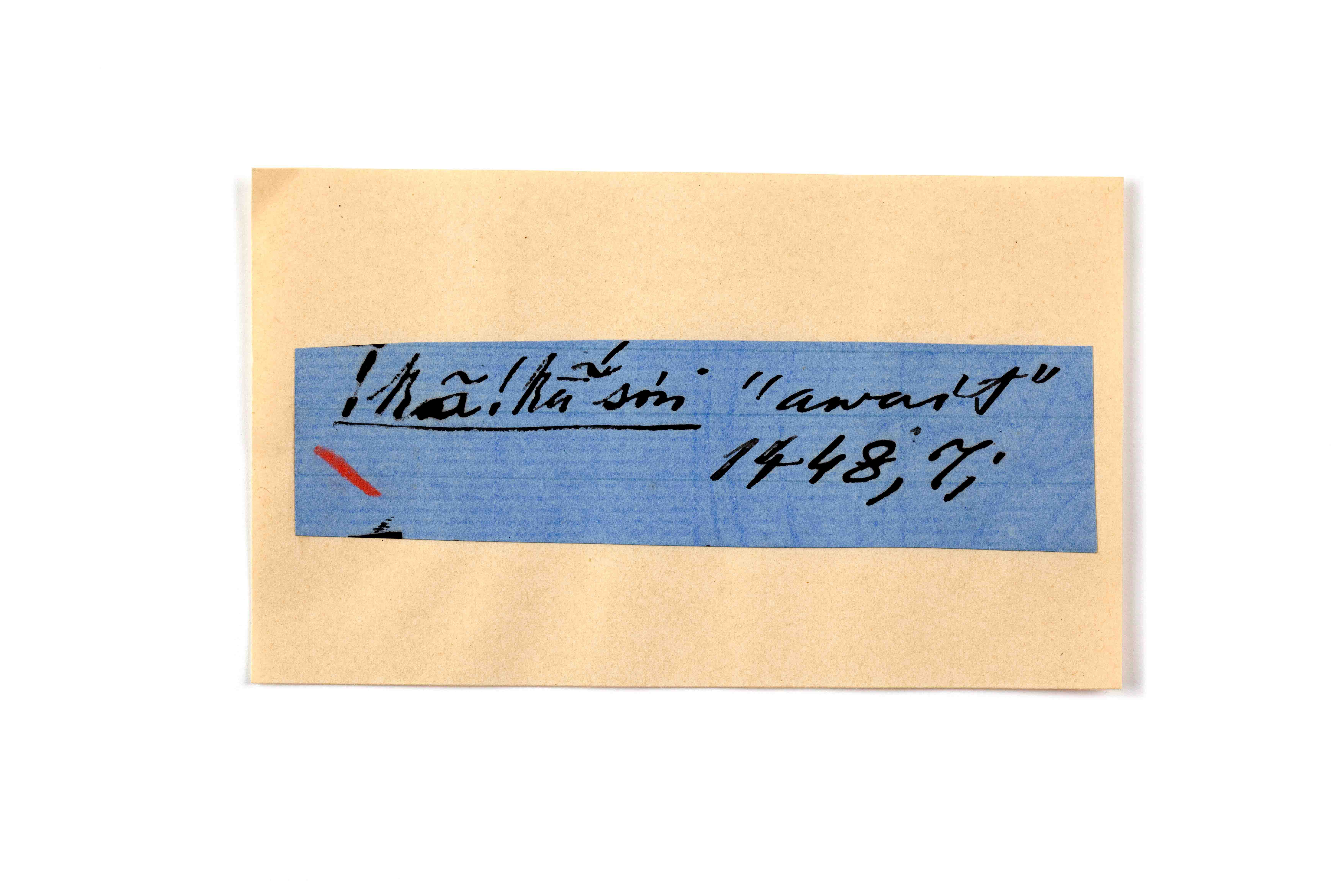 ink on blue paper glued on card