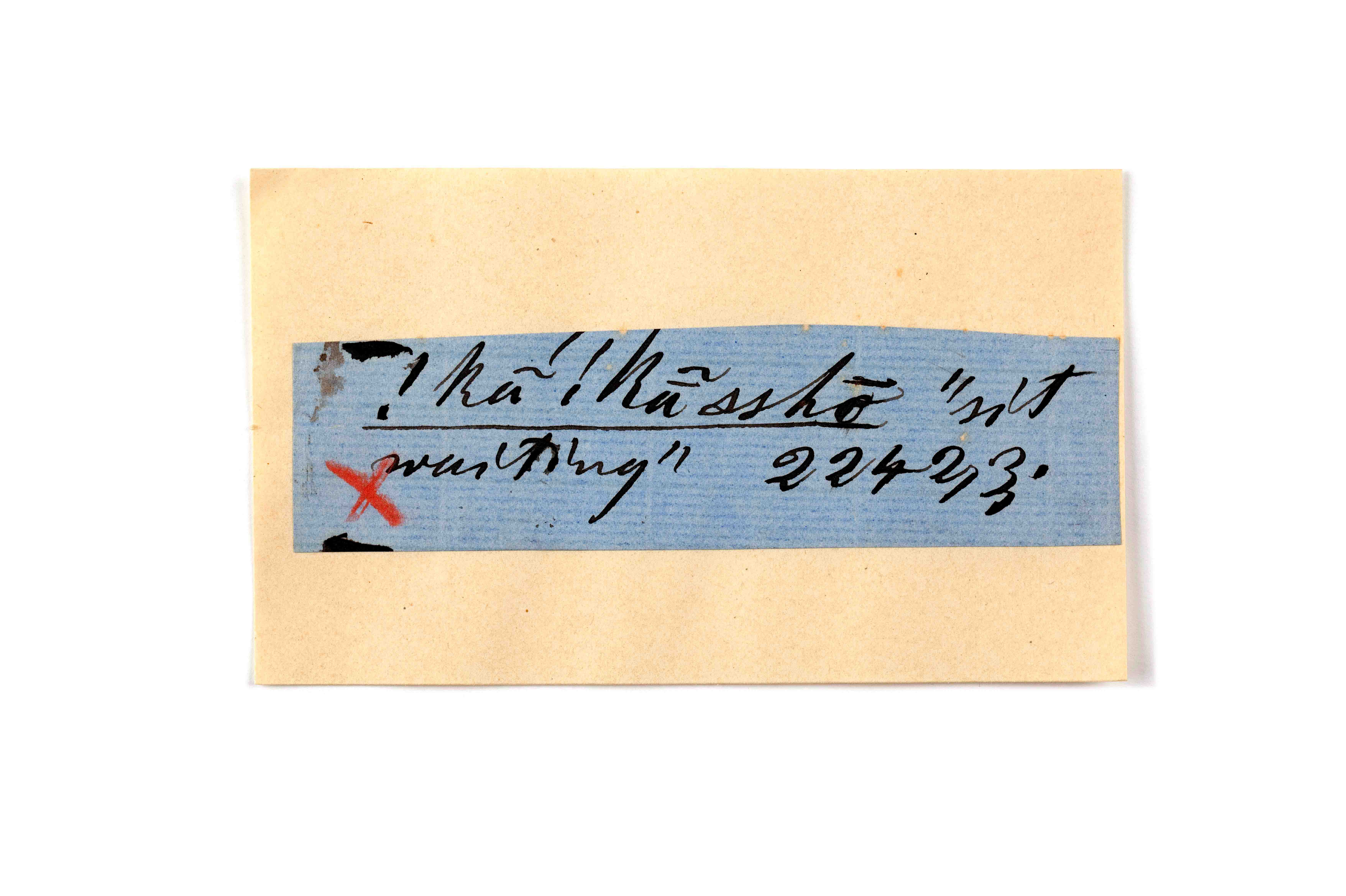 ink on blue paper glued on card
