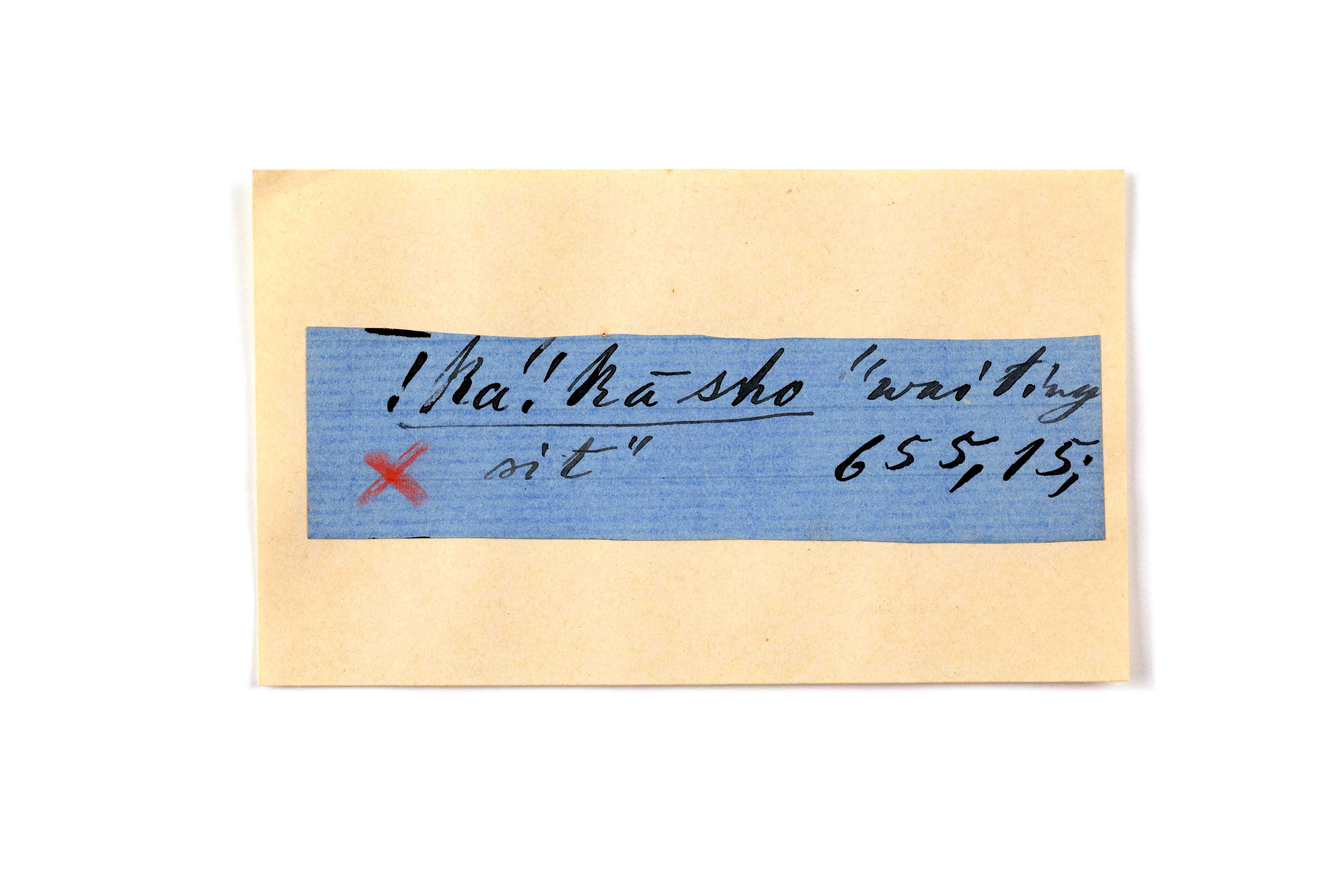 ink on blue paper glued on card