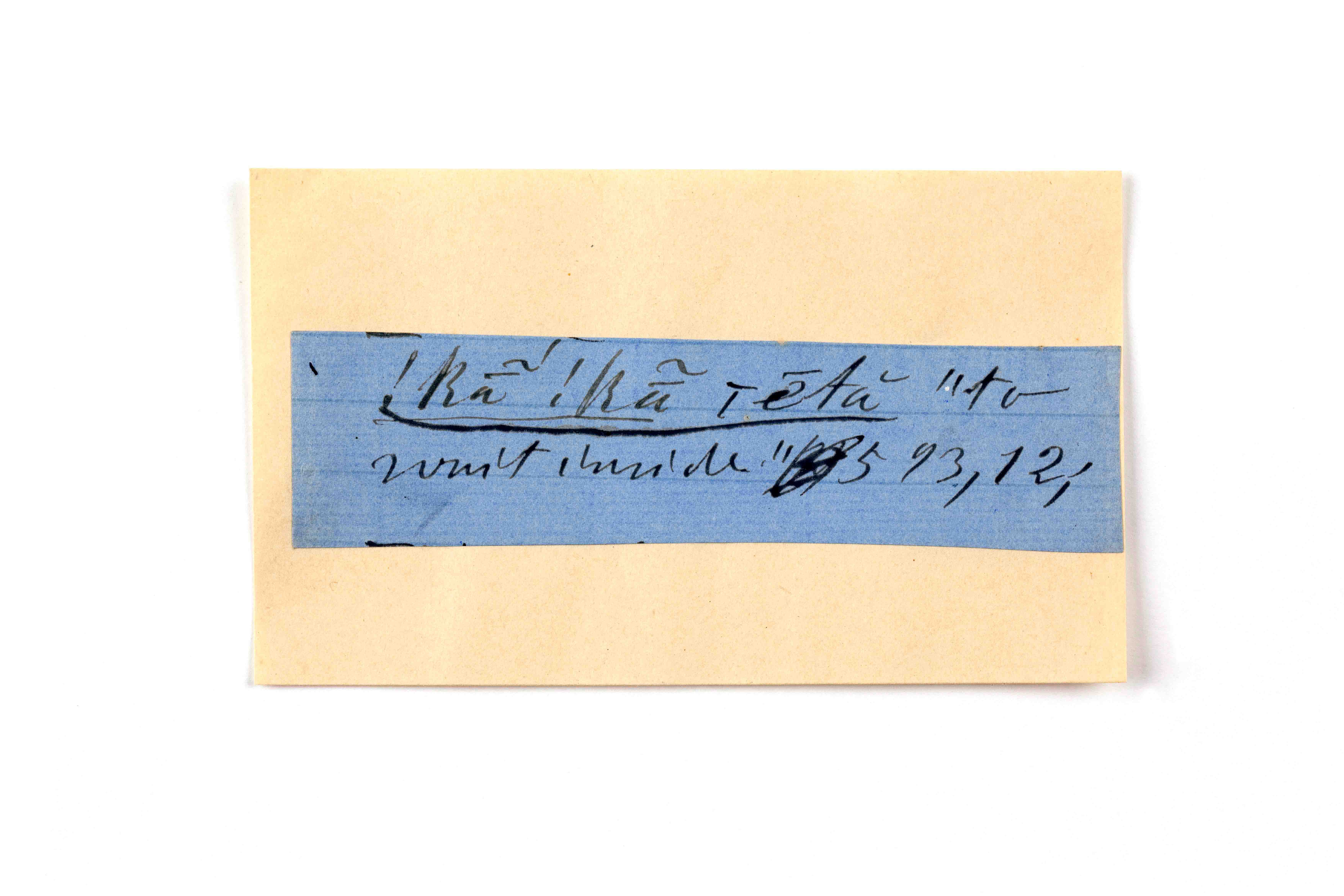 ink on blue paper glued on card