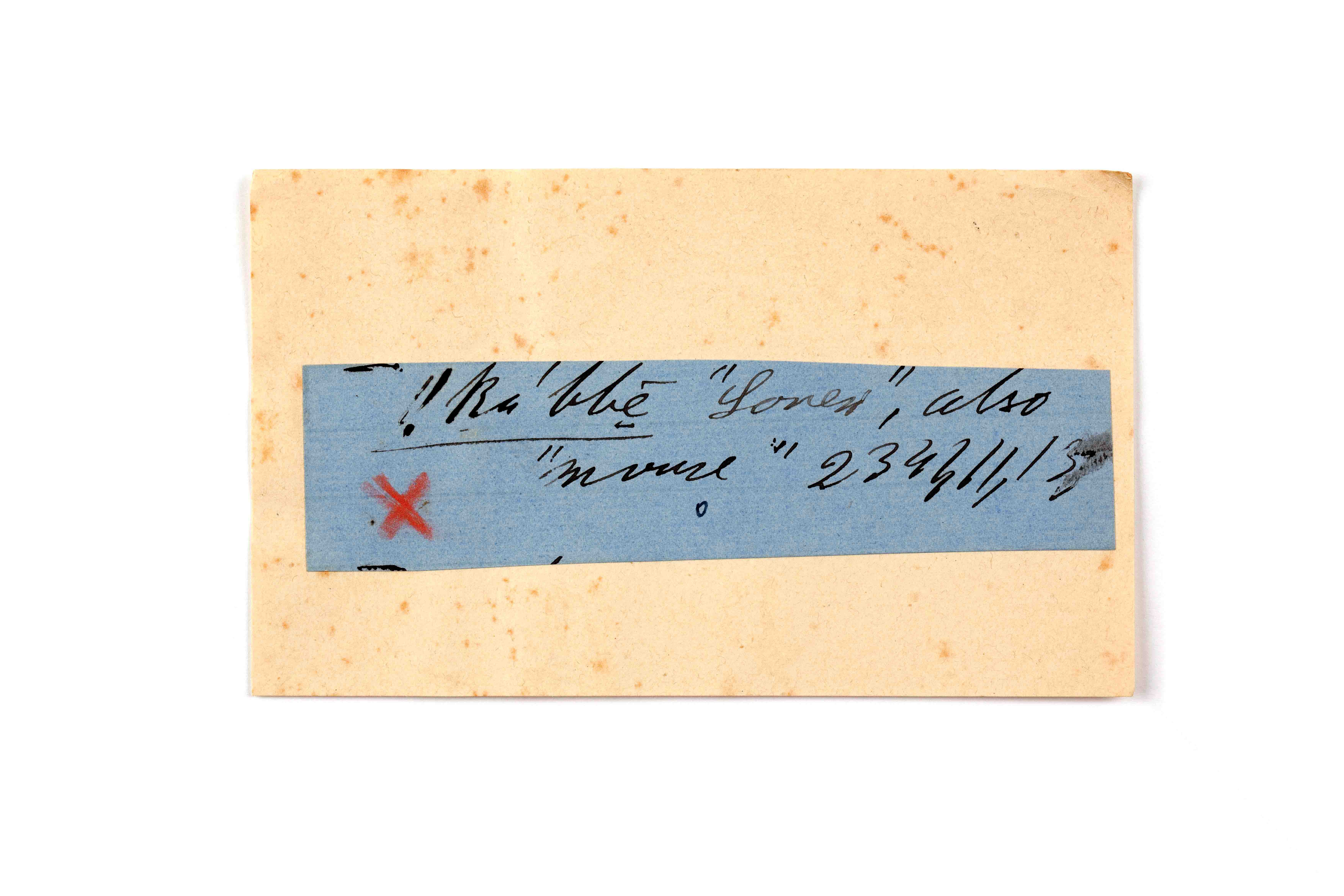 ink on blue paper glued on card