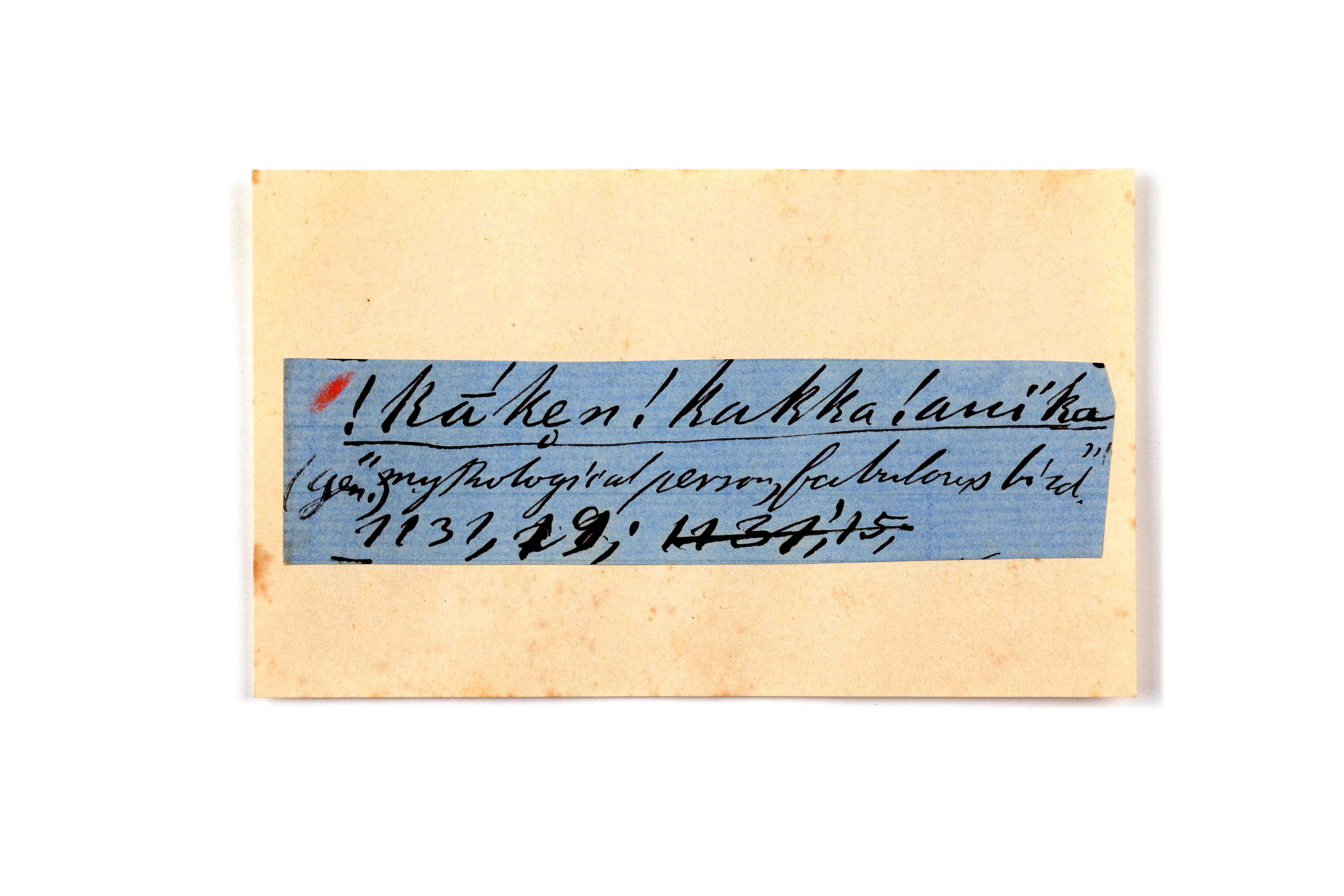 ink on blue paper glued on card