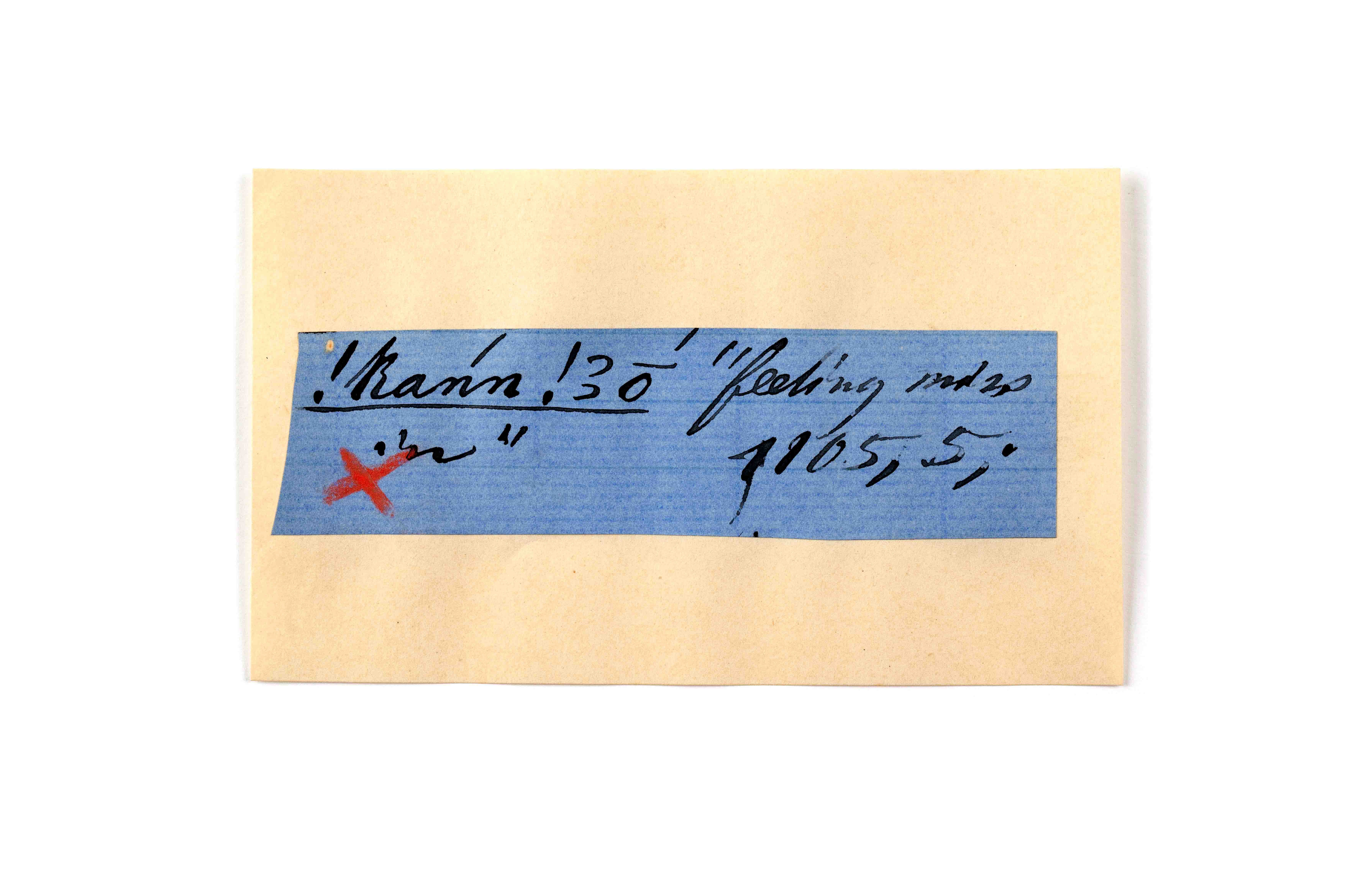 ink on blue paper glued on card