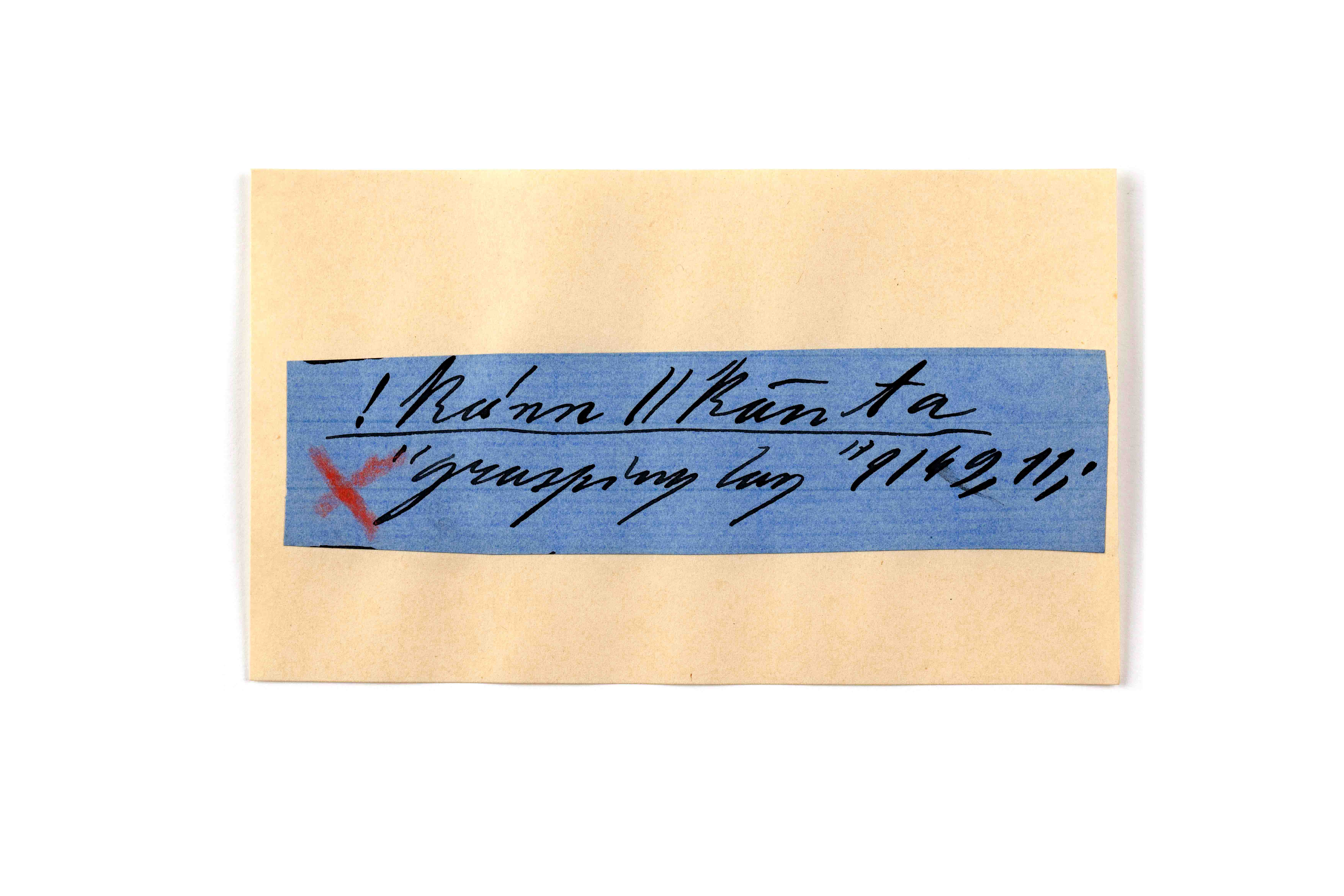 ink on blue paper glued on card