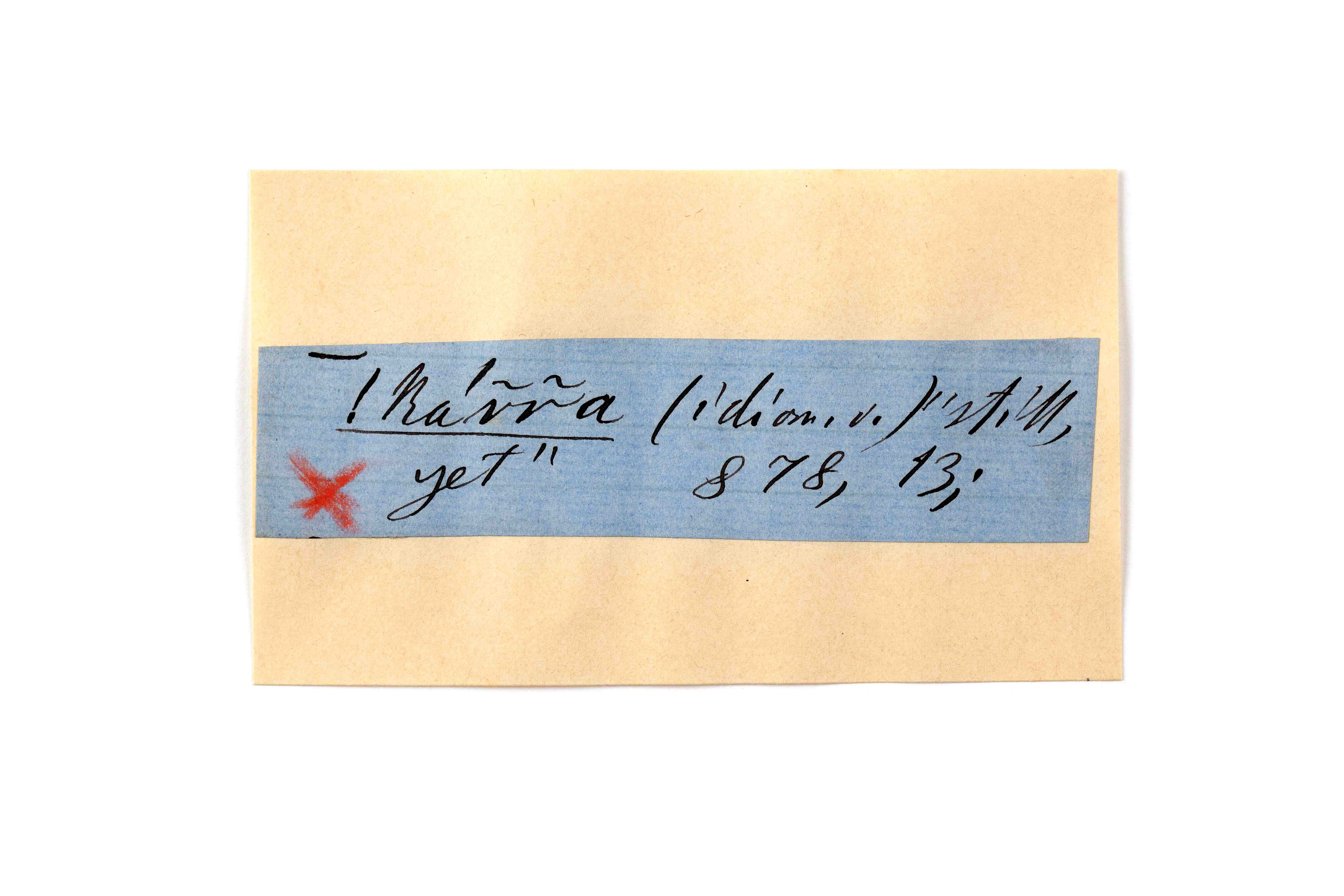 ink on blue paper glued on card
