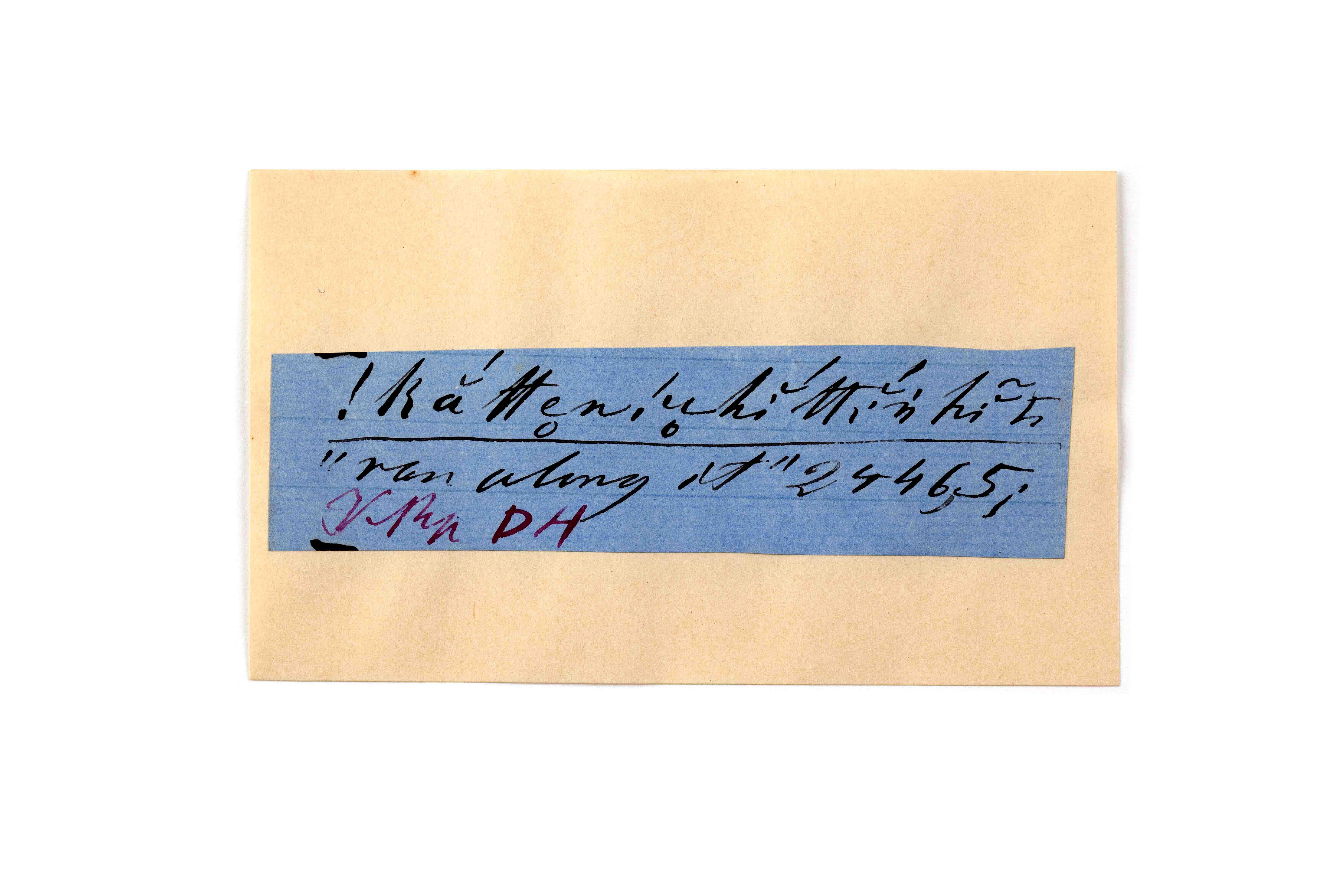 ink on blue paper glued on card