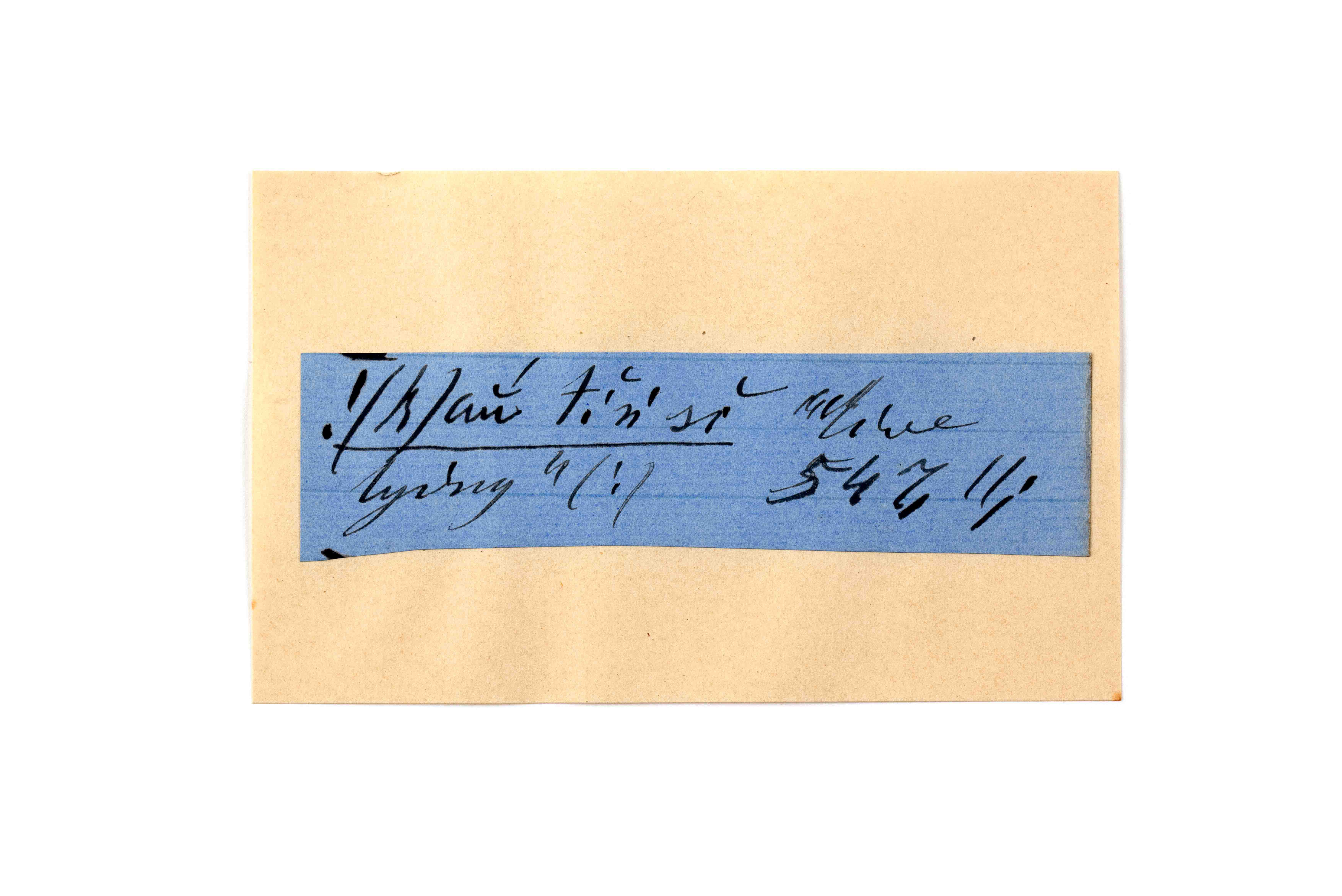 ink on blue paper glued on card