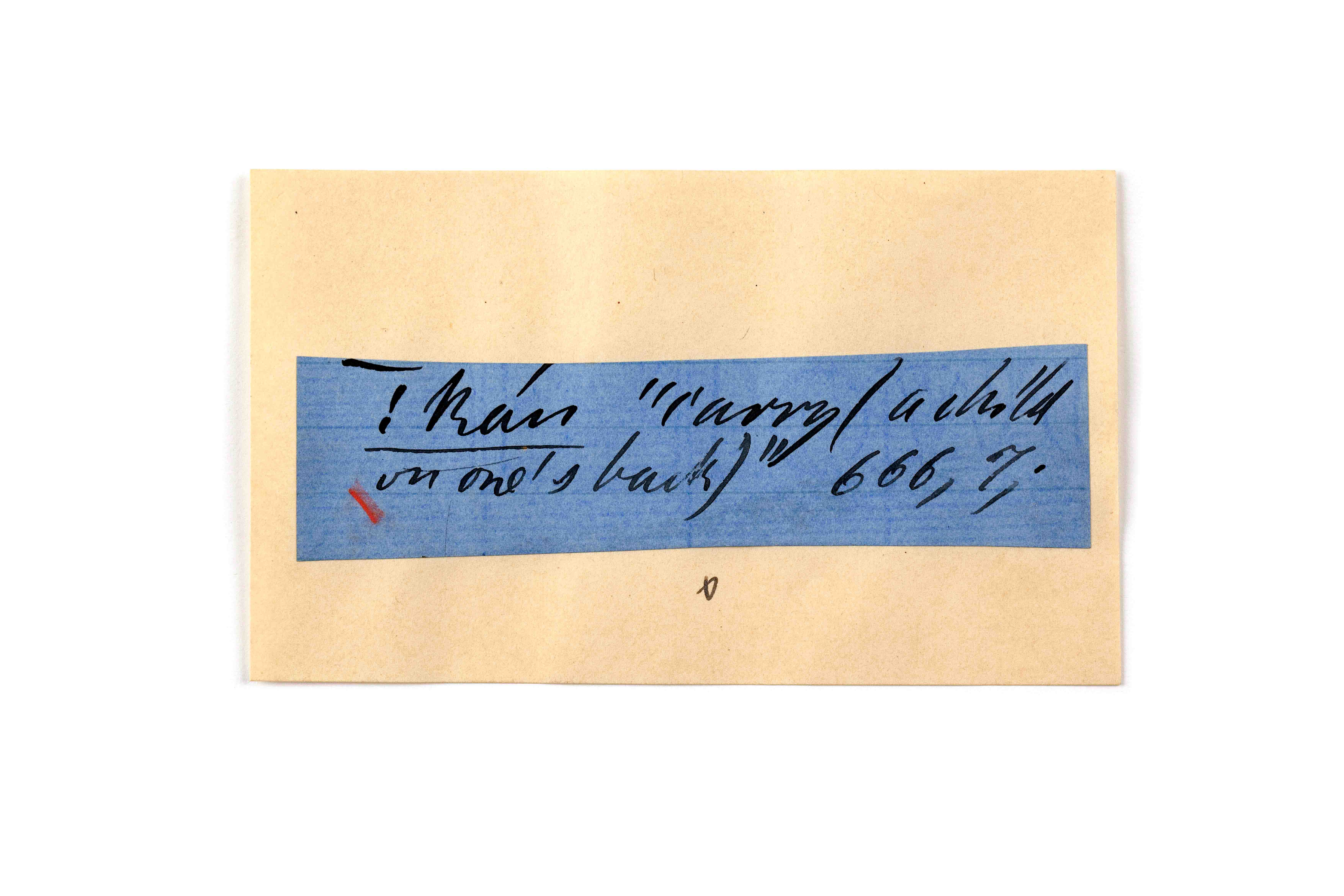 ink on blue paper glued on card